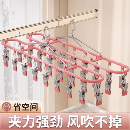 袜子晾晒架多功能不锈钢衣架防风多夹子内衣夹家用阳台凉袜子神器