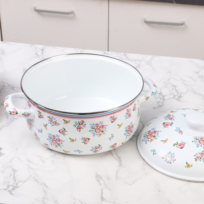 新品补货欧丽家珐琅搪瓷锅碎花矮款汤锅搪瓷炖锅汤锅电磁炉燃气