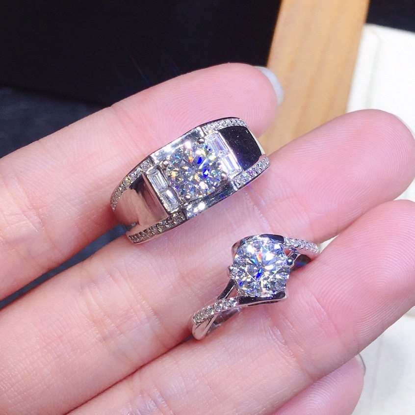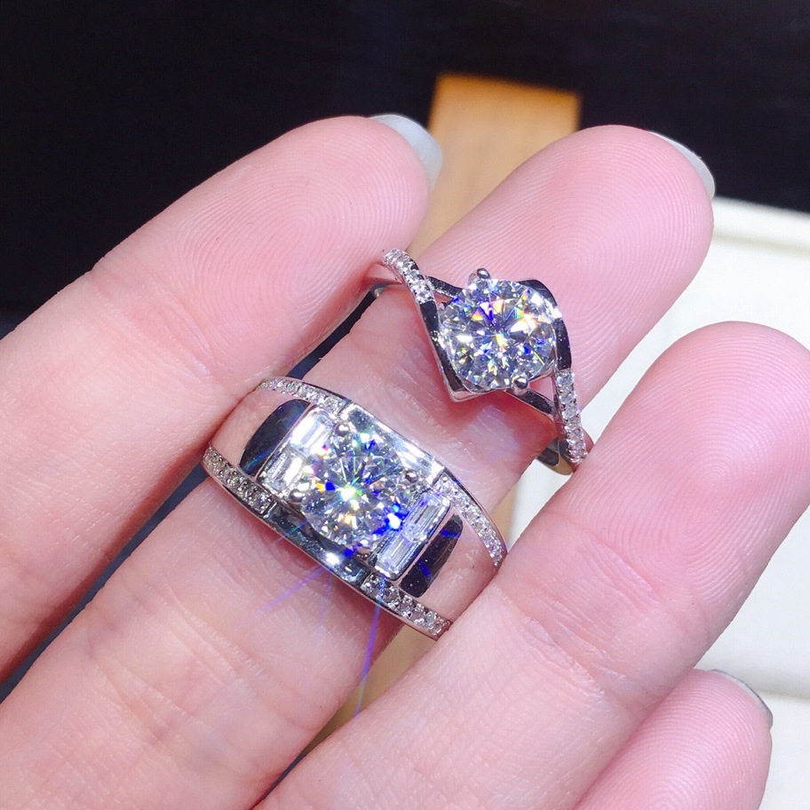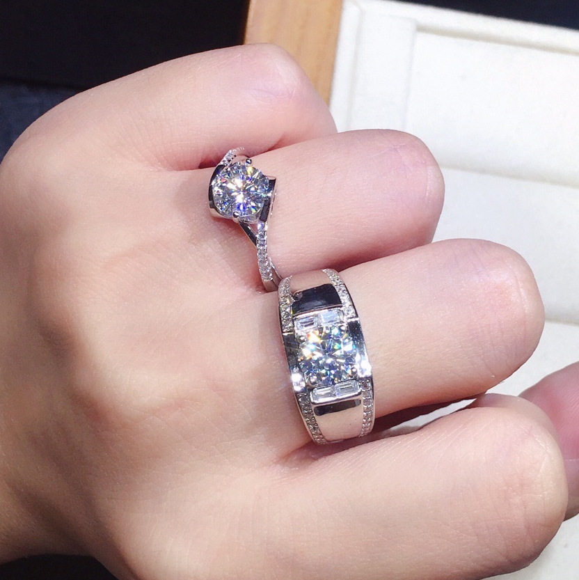 男女情侣订婚结婚1克拉钻戒八心八箭仿真莫桑钻锆石镶钻闪亮戒指