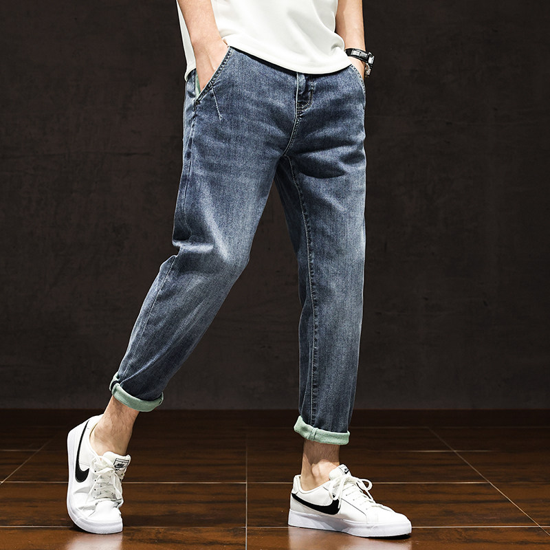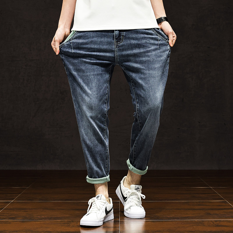 薄款九分牛仔裤男微哈伦9分裤子弹力休闲八分8分裤高端潮夏季新款