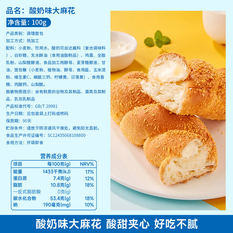 酸奶大麻花夹心面包早餐
