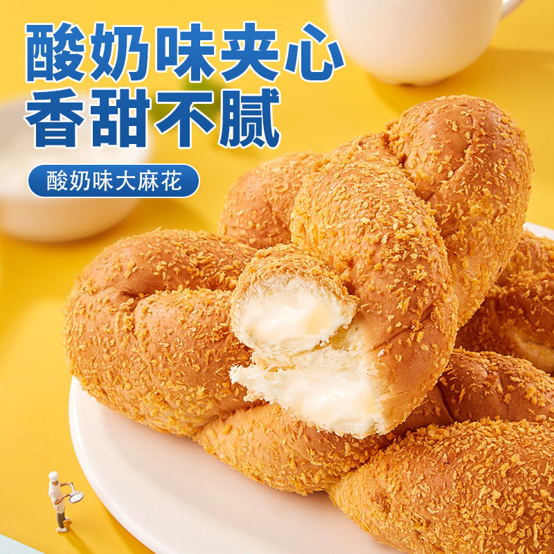 酸奶大麻花夹心面包整箱早餐食品速食充饥夜宵健康小零食休闲小吃