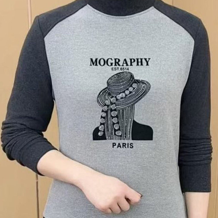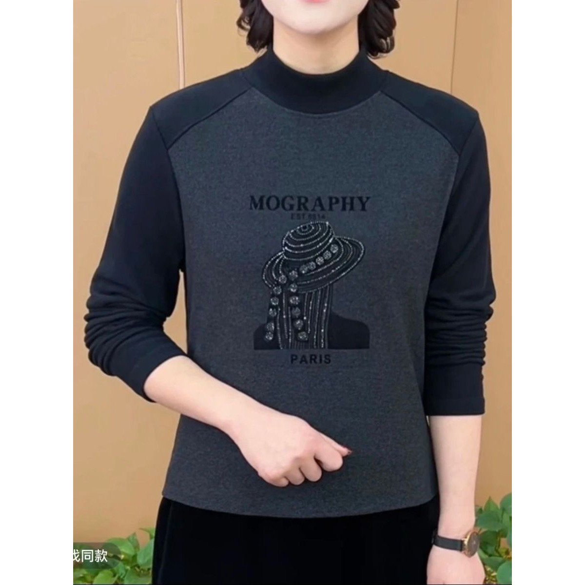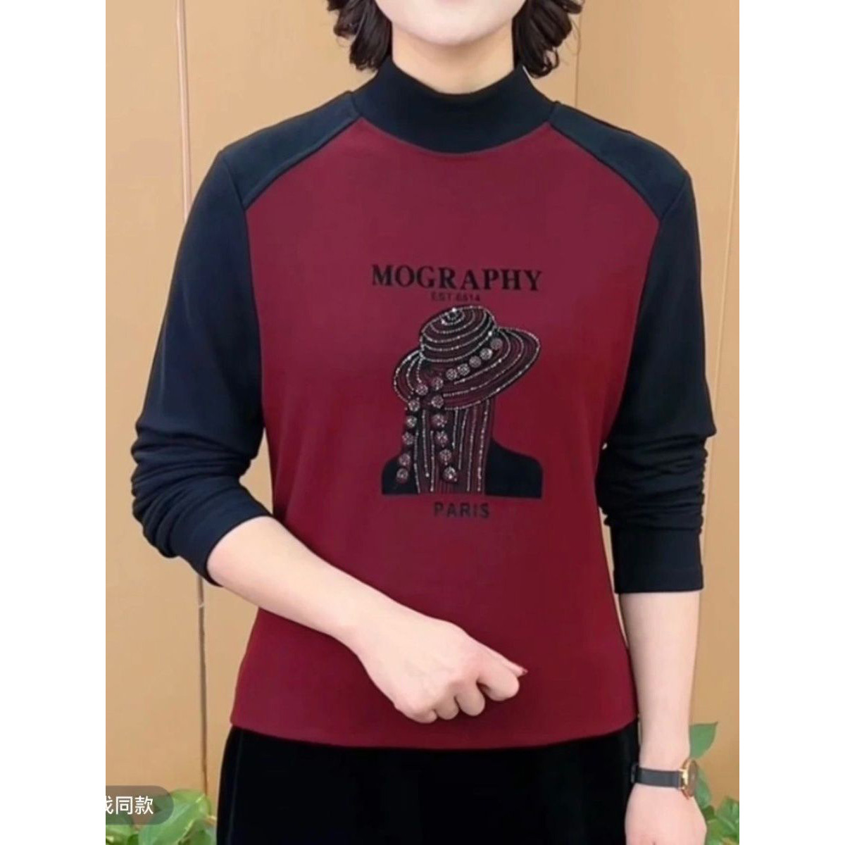 秋冬季新款洋气加绒t恤宽松保暖中老年时尚女装妈妈衣服长袖小衫