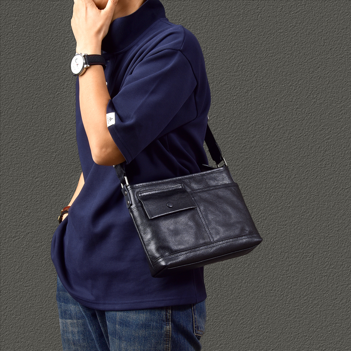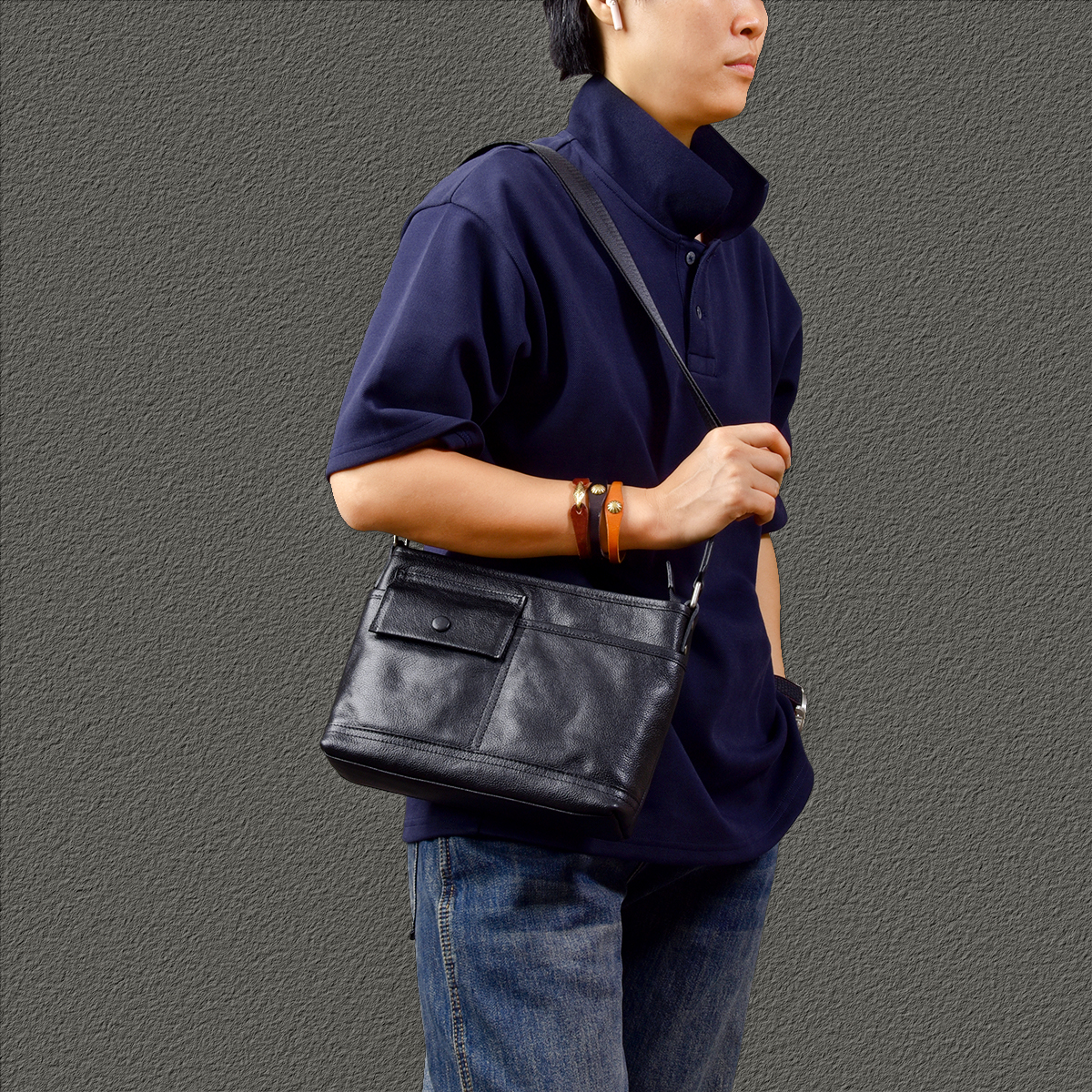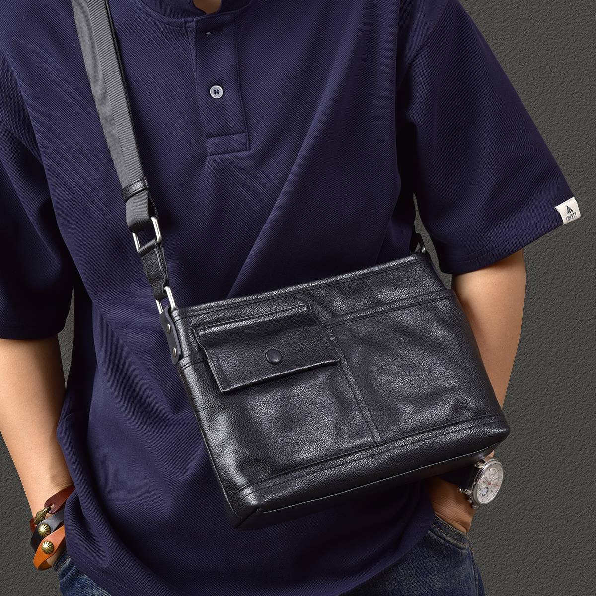 二十四街男生潮流通勤真皮单肩斜挎包休闲头层牛皮质感逛街小挎包