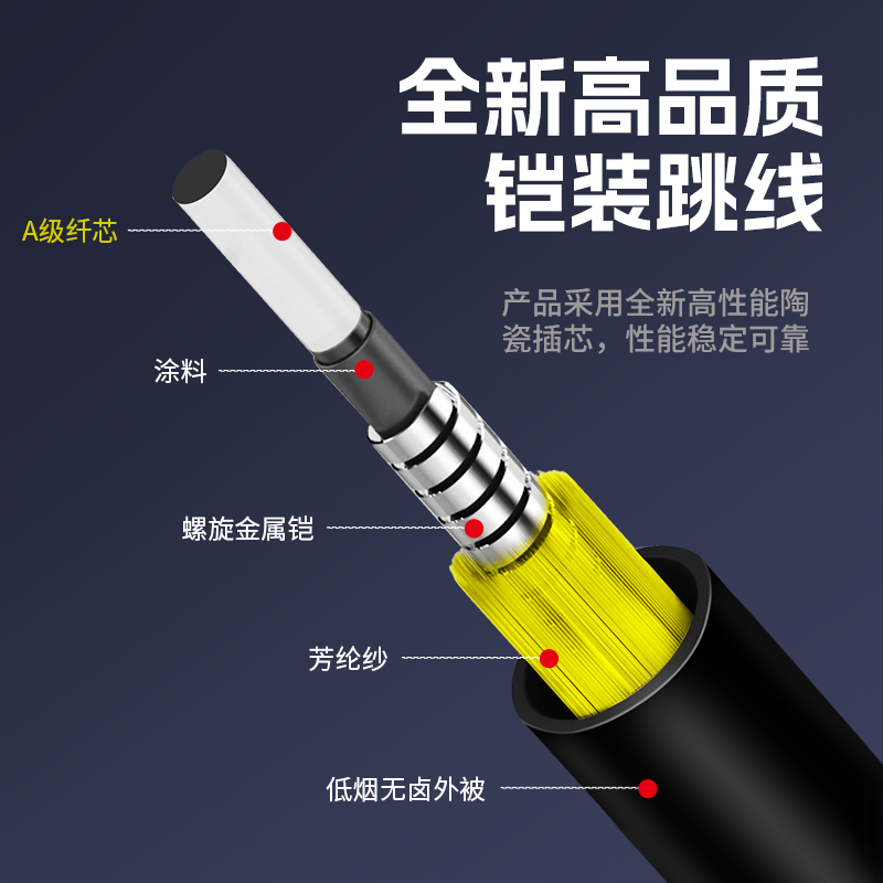 华杰恒讯定制 室外1芯2芯4芯铠装光纤免熔接光缆跳线架空收发器尾纤线蝶形SC成品皮线50 100 200 300 500米