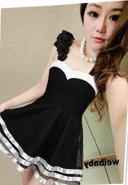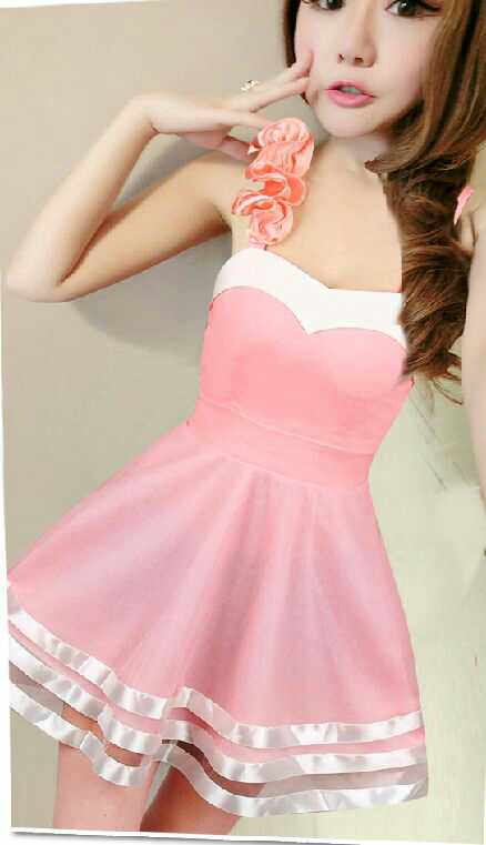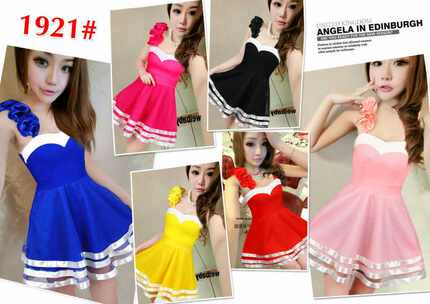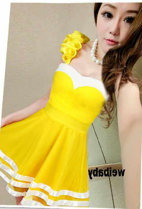 新品撞色抹胸吊带连衣裙高腰裹胸裙a字裙公主裙蓬蓬裙短裙女