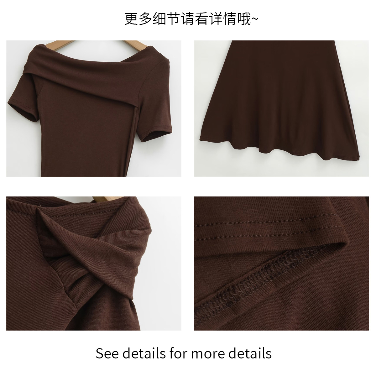 法式性感斜肩修身短袖连衣裙长裙