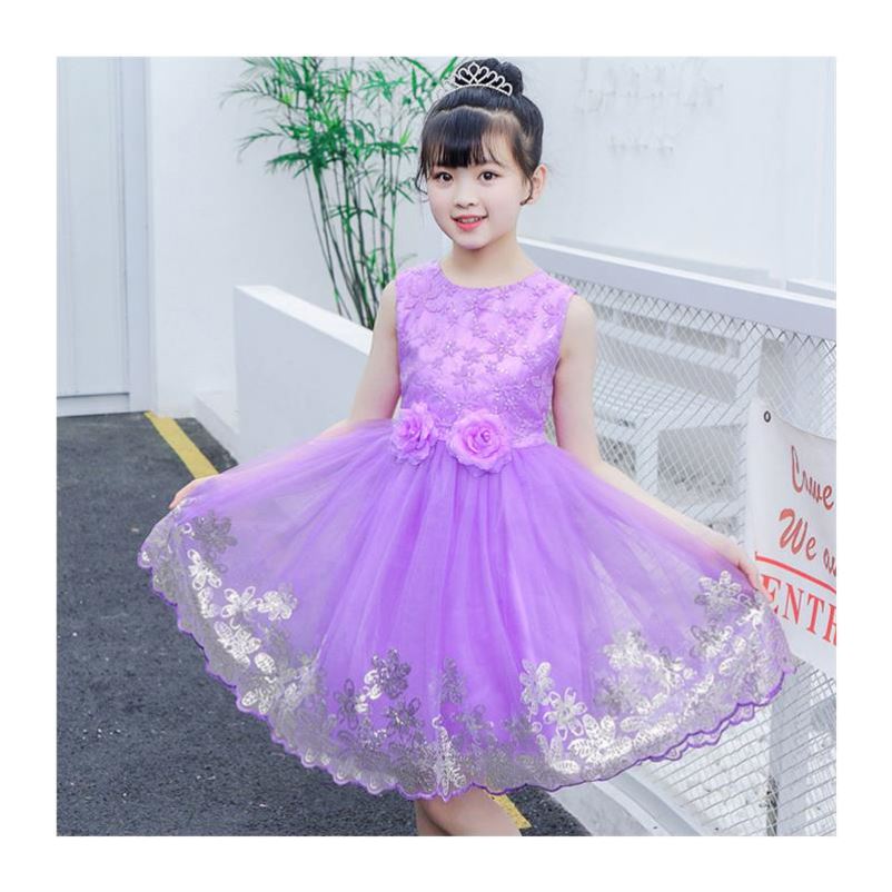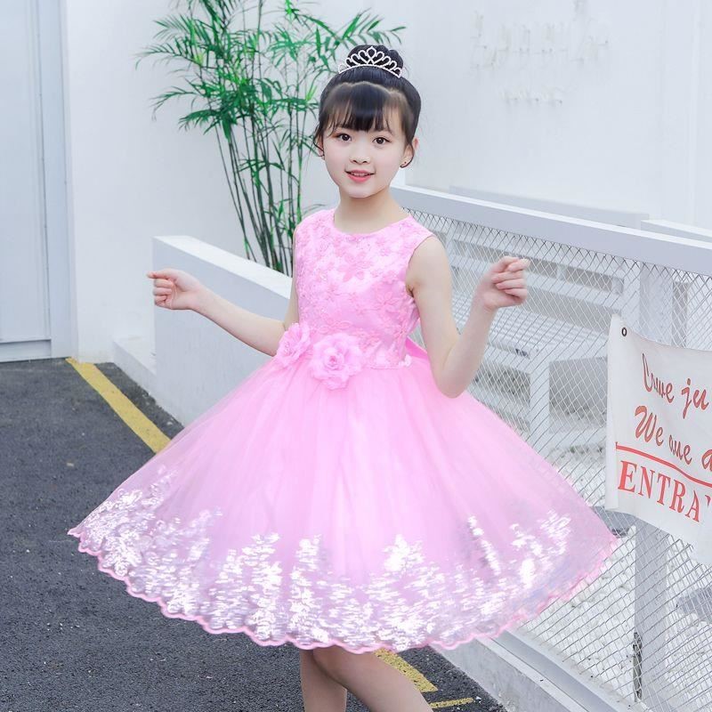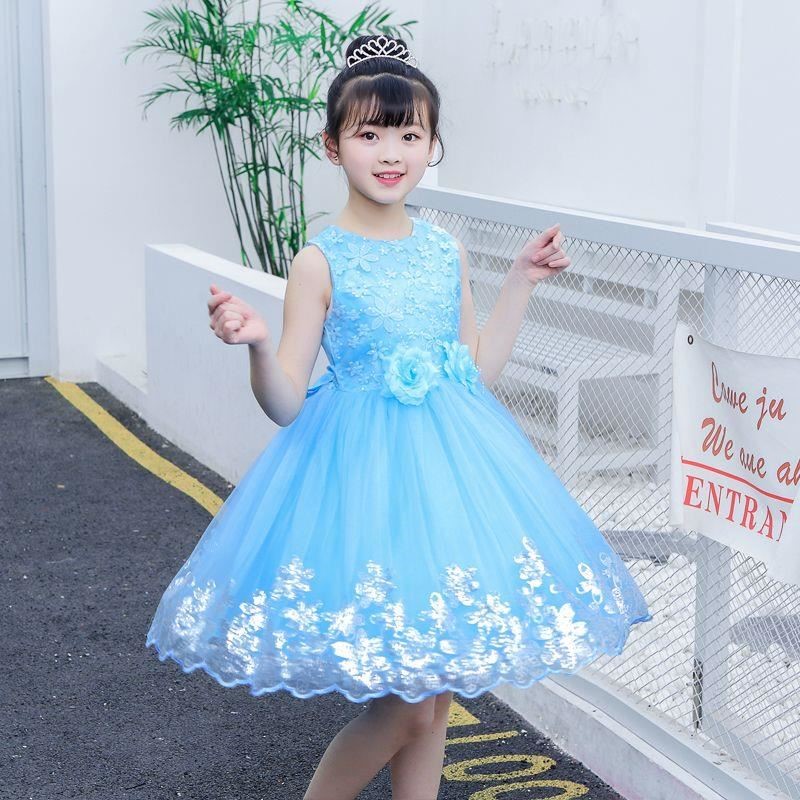 女童连衣裙2025夏新款女孩两朵花金边下摆公主裙中大童演出礼服裙