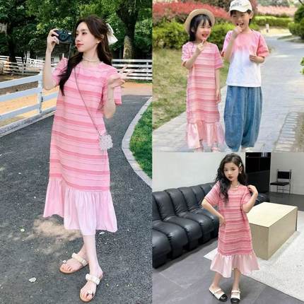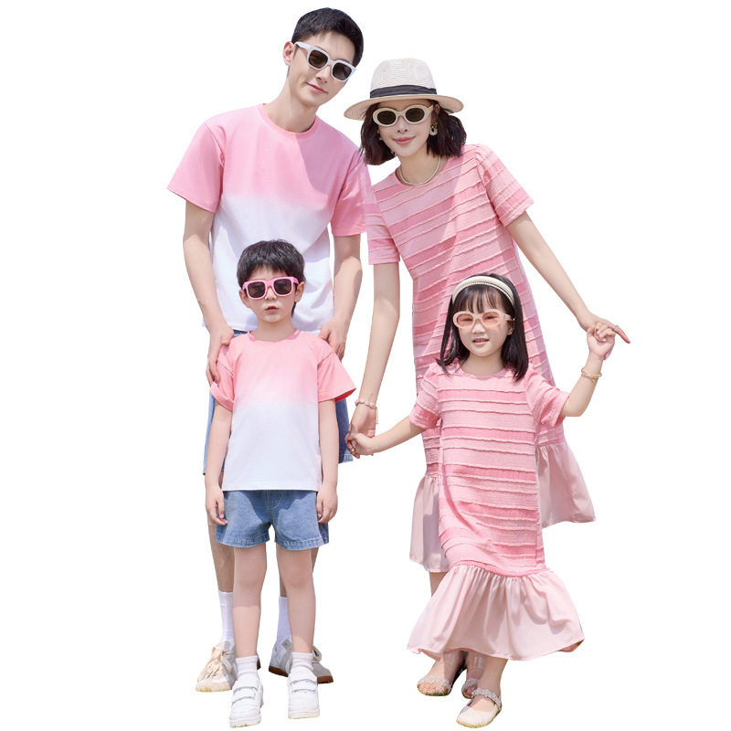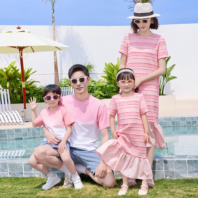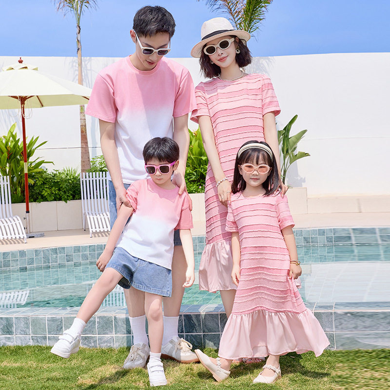 亲子装一家三口高级感不一样的四口家庭装夏季旅游度假母女连衣裙