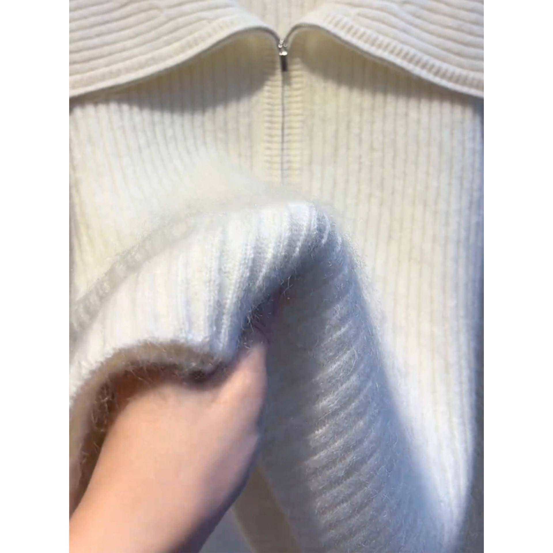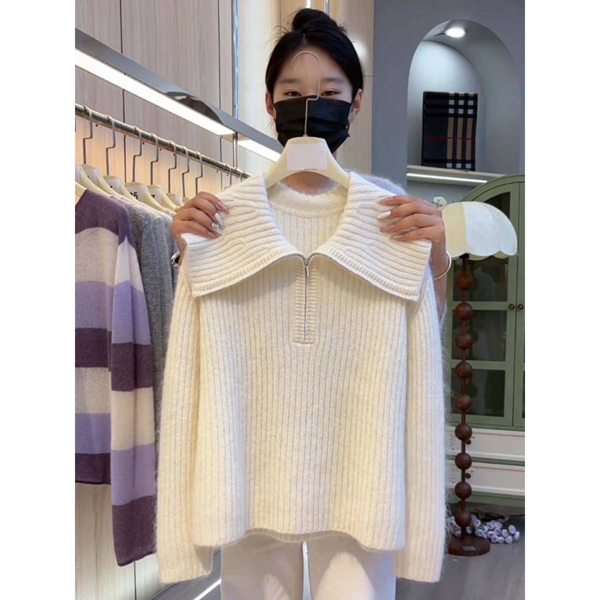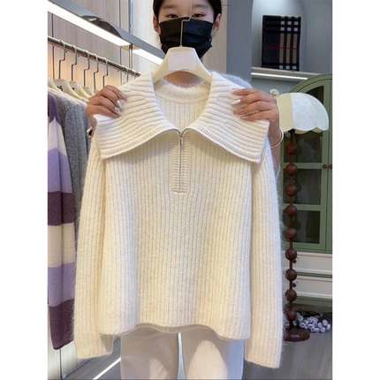 白色大翻领套头毛衣女2025秋季新款高级感独特超好看软糯针织上衣