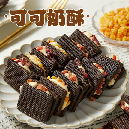 可拉丝!夹心可可牛轧奶酥芒果蔓越莓巧克力饼干下午茶零食休闲