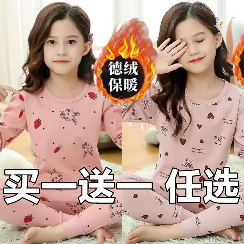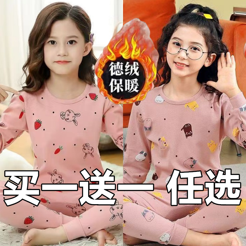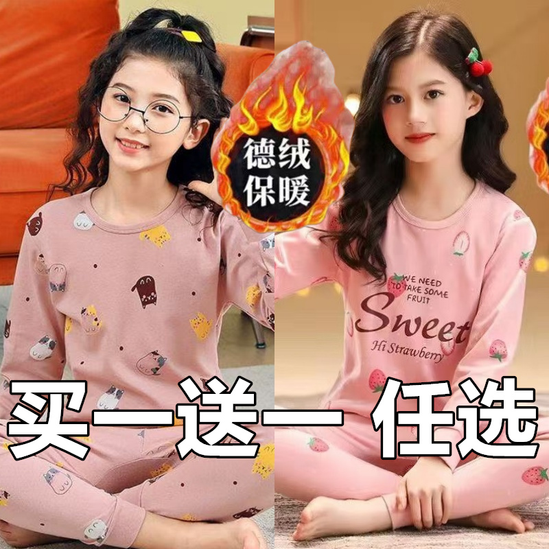 儿童睡衣女孩2025春秋季德绒长袖家居服卡通条纹女童衬衣宝宝套装