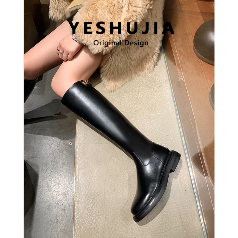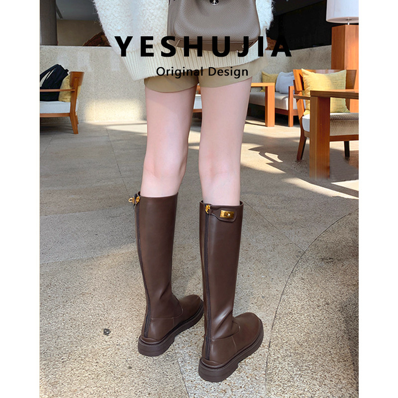 叶叔家棕色骑士靴子女2024新款长筒靴女冬季加绒高筒靴显瘦长靴女
