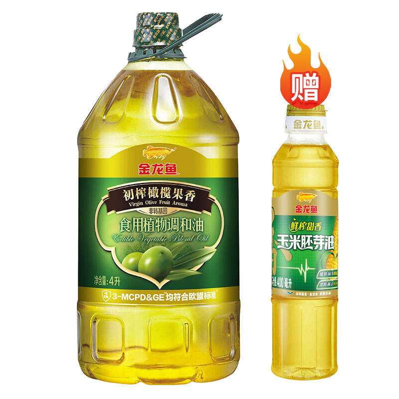 金龙鱼橄榄食用调和油4L桶装家用初榨橄榄果香非转基因家用食用油