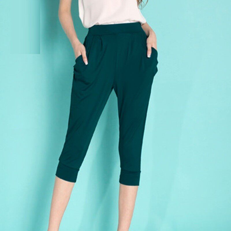 25新款夏季薄款宽松紧腰休闲修身加肥加大80至300胖mm哈伦裤7分裤