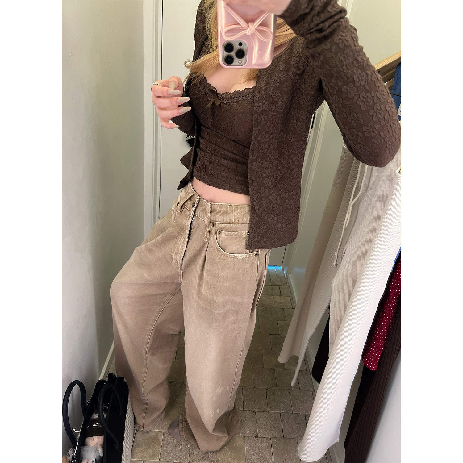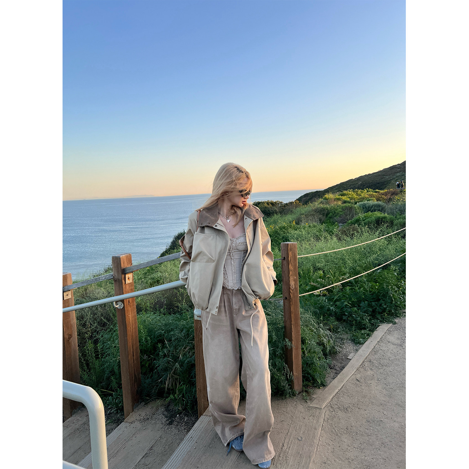 Xinlei Lin 加州日落 acn*做旧水洗定染直筒裤宽松工装牛仔裤