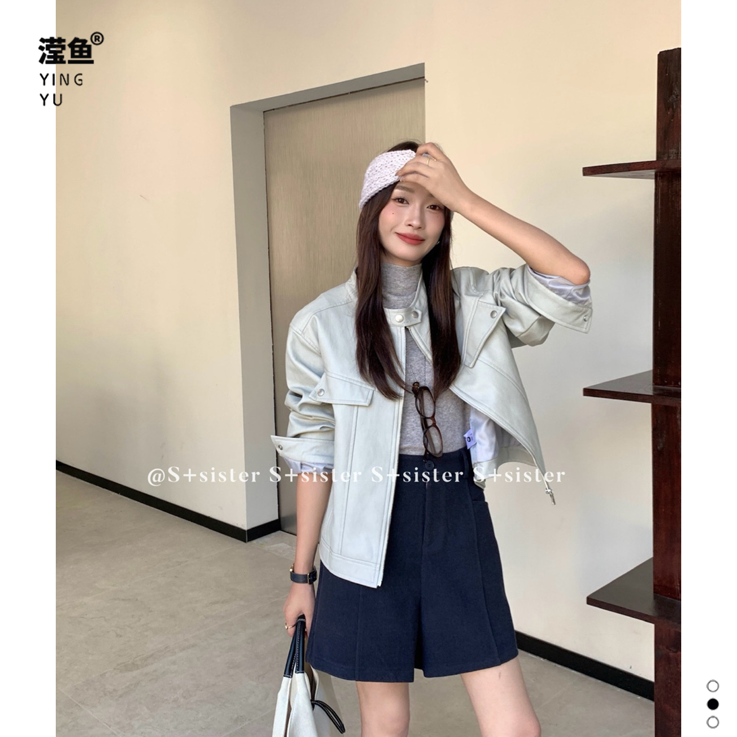S+ W1165大码毛呢显瘦休闲气质短裤百搭高级遮肉小个子高腰阔腿裤