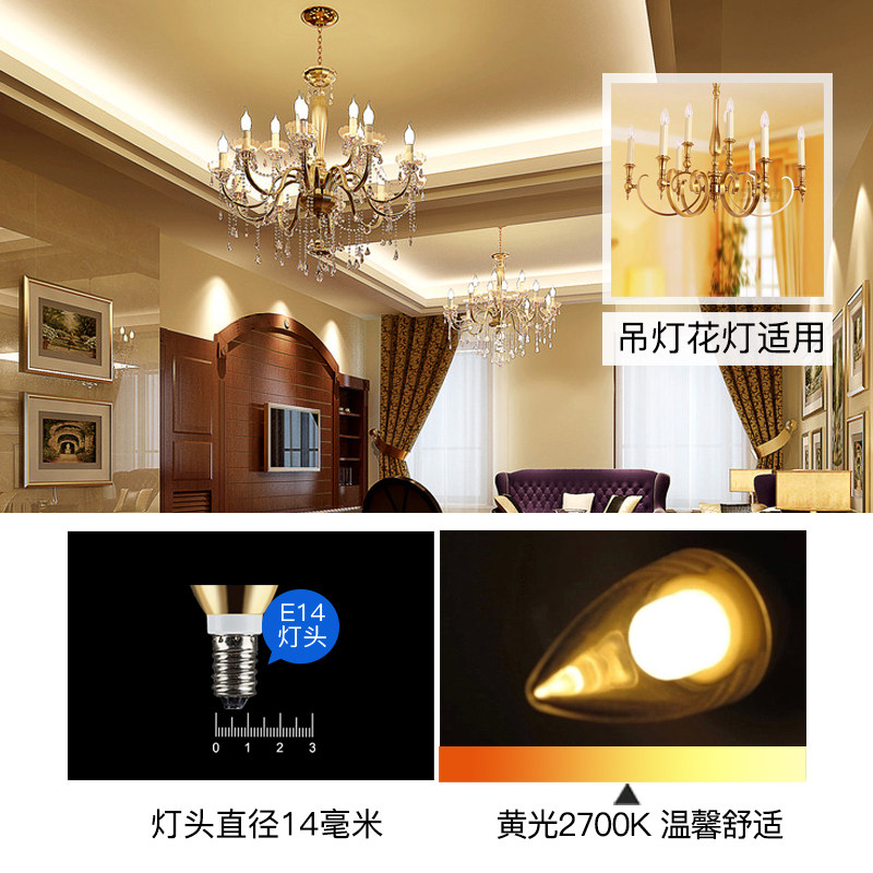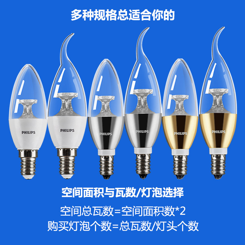 飞利浦led蜡烛灯泡e14小螺口尖泡拉尾水晶吊灯家用照明光源10只装