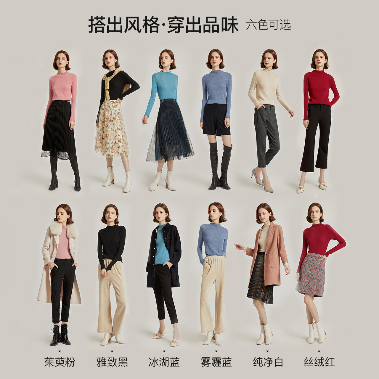 FINITY半高领毛衣女春新款修身内搭针织衫慵懒风纯羊绒衫打底衫