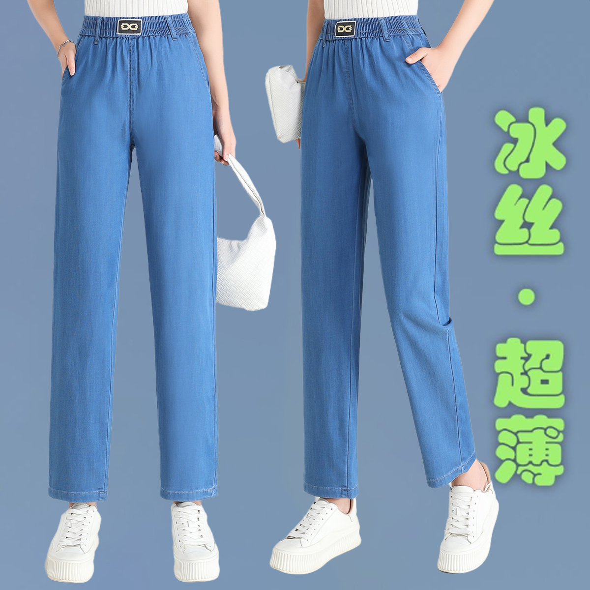 冰丝薄款牛仔裤女士夏季高腰直筒裤妈妈新款中年天丝宽松休闲长裤