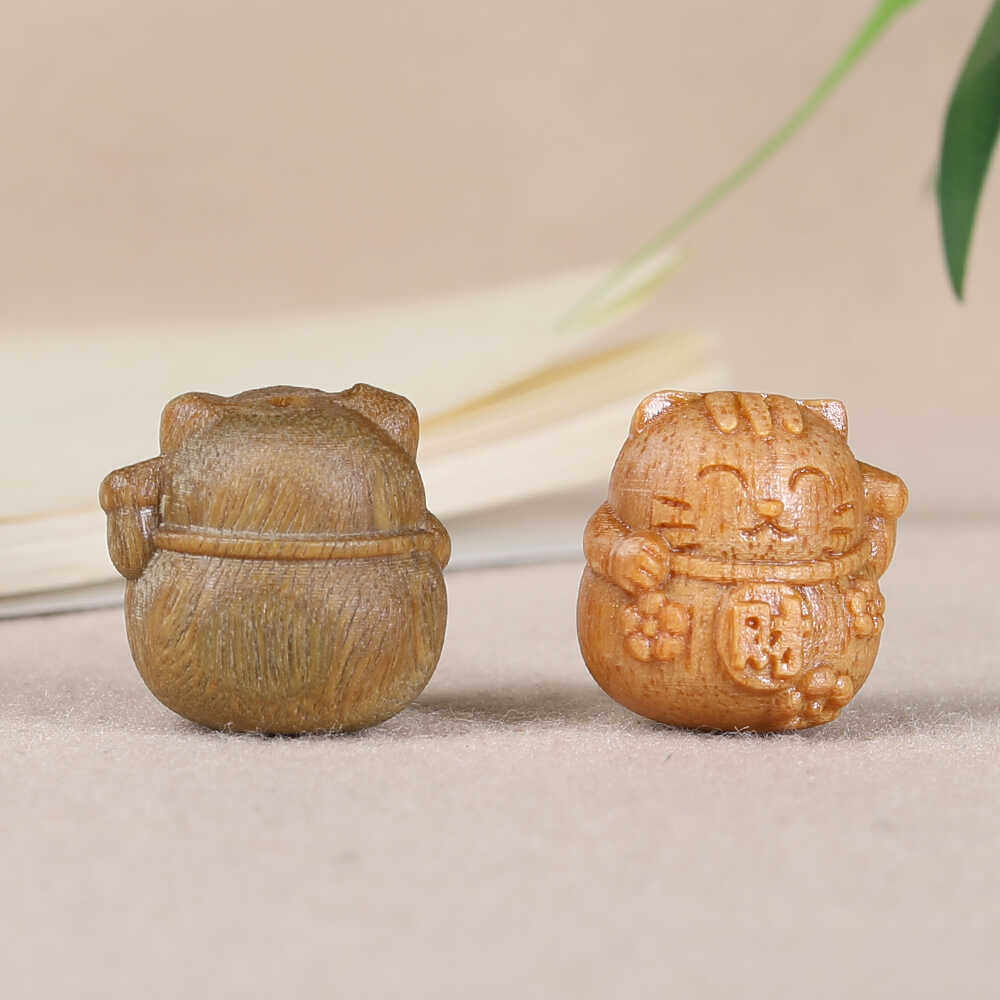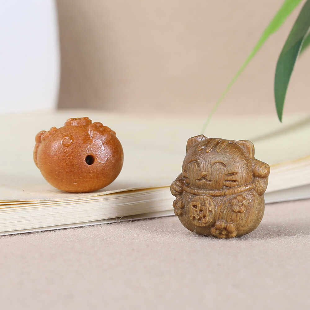 天然绿檀紫檀实木雕刻可爱招财猫创意diy手机链钥匙扣车挂包饰品