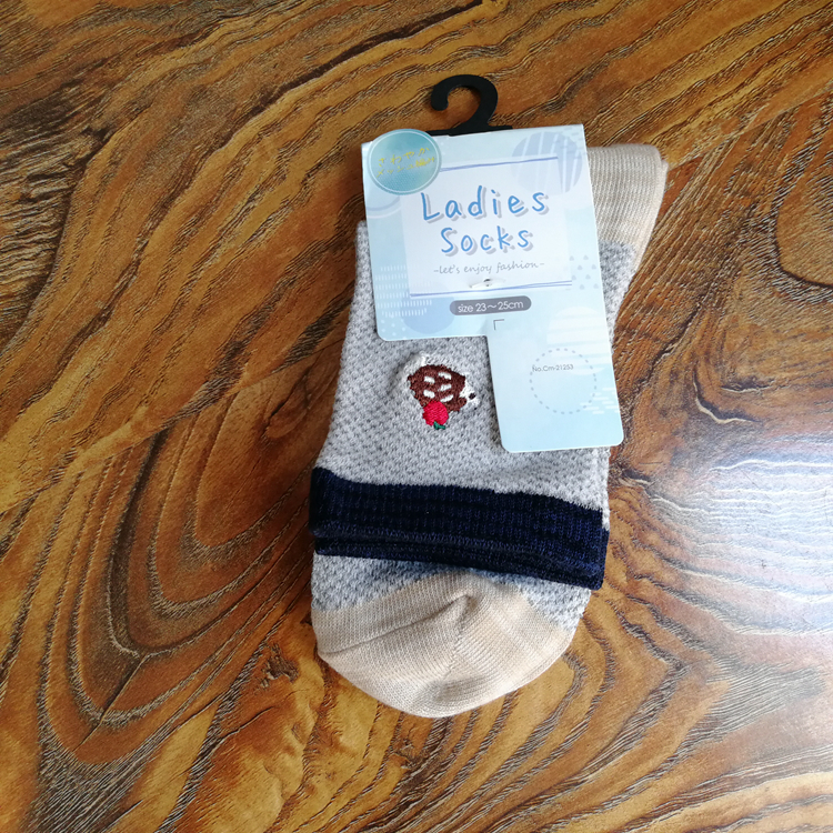 出清!外贸春夏秋薄款女袜甜美可爱布标卡通刺绣短袜女生中筒袜子