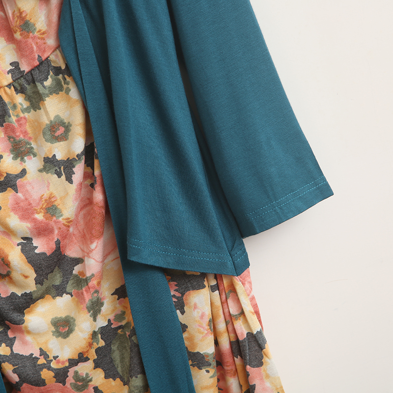 2025春秋季宽松假两件套莫代尔连衣裙遮肚系带棉绸长袖裙