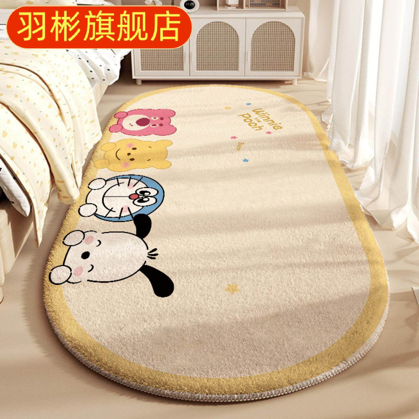 卡通仿羊绒床边地毯卧室公主床边毯冬天儿童房耐脏防滑厚地垫现货