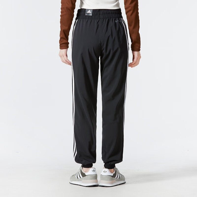 阿迪达斯女裤2025春季新款运动裤宽松束脚裤三条杠梭织休闲裤长裤