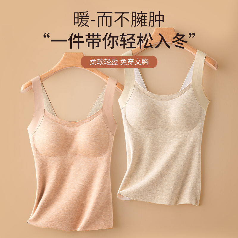 保暖背心女秋冬季内搭带胸垫加绒加厚羊毛蚕丝内穿打底小吊带上衣