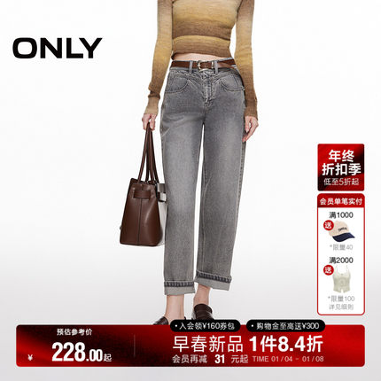 ONLY2025冬季新款腹部V字剪裁宽松高腰显瘦九分裤男友裤牛仔裤女