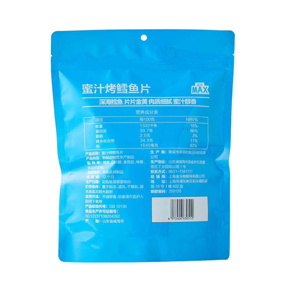 盒马MAX 蜜汁烤深海鳕鱼片538g小吃干货无刺鱼干片零食即食蜜汁味