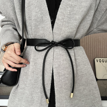 新款牛皮女士真皮宽皮带配裙子大衣装饰打结细腰带女时尚腰封百搭