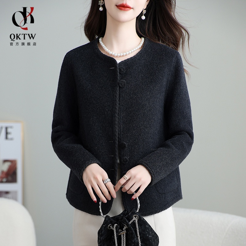 毛呢大衣女2025新款秋冬季中老年小香风双面绒外套短款显瘦妈妈装