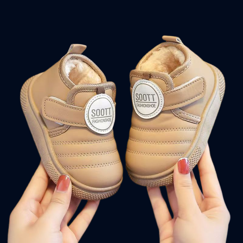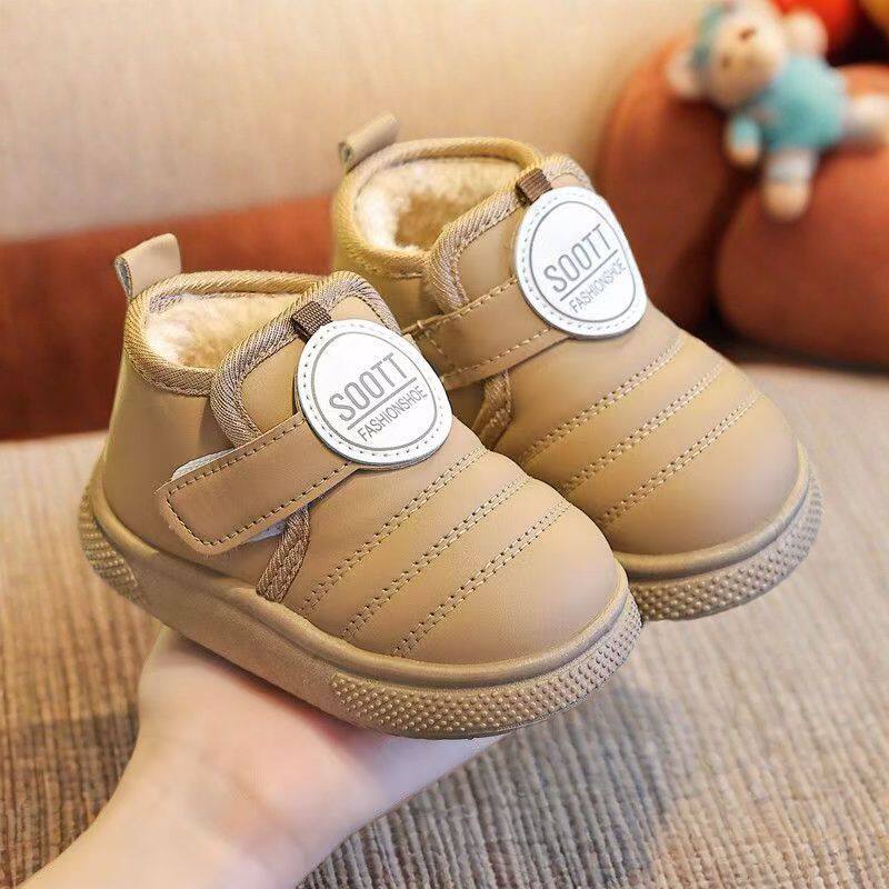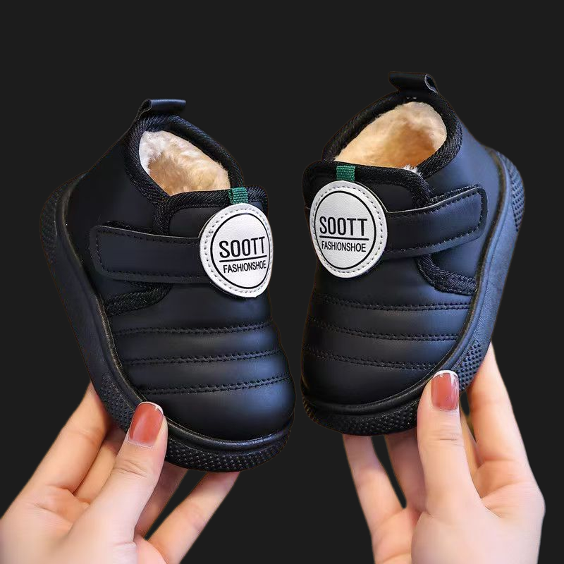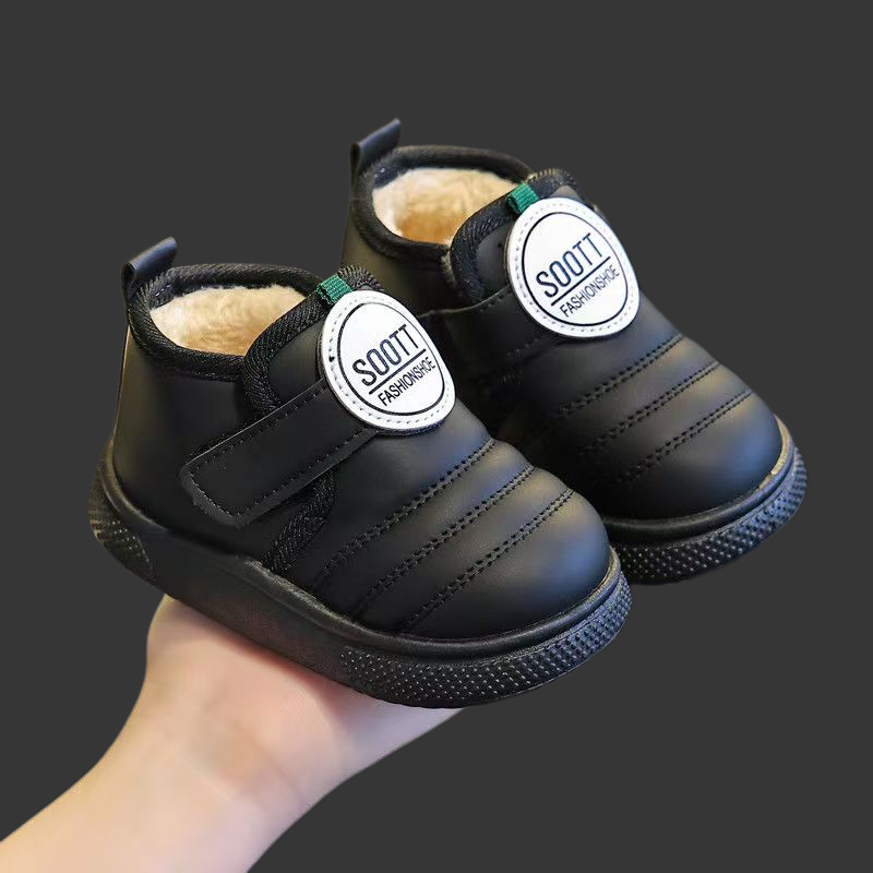 男童棉鞋冬季加绒保暖防水儿童皮面加厚短靴步鞋宝宝雪地