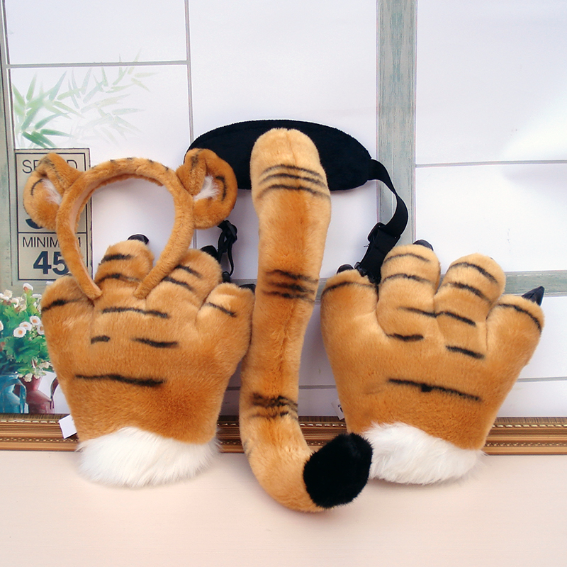 仿真老虎尾巴白虎猎豹爪子恐龙尾巴毛绒玩偶狮子浣熊公仔儿童玩具