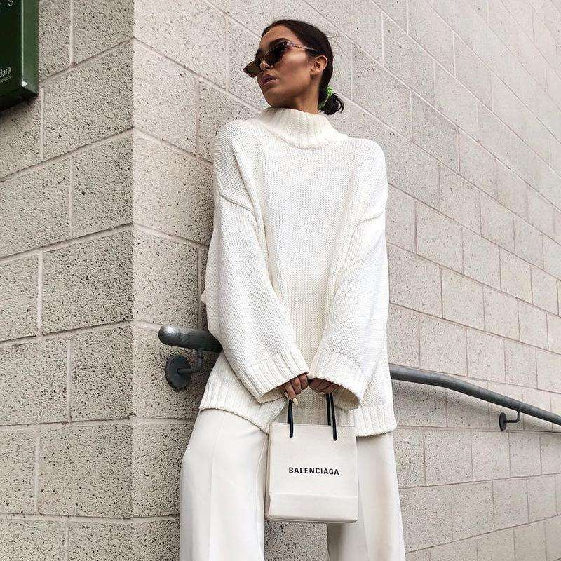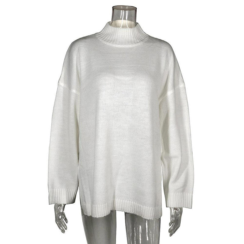 外贸时尚女装秋冬套头长袖宽松毛衣纯色高领针织衫女