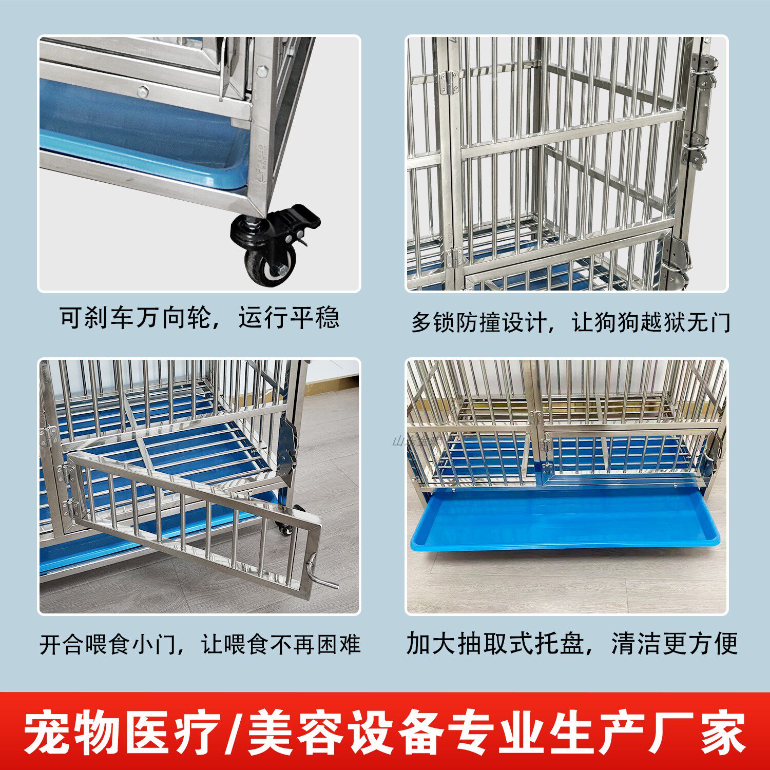 不锈钢狗笼子家用室内中小型犬兽用宠物笼可拆卸折叠便携式加厚笼
