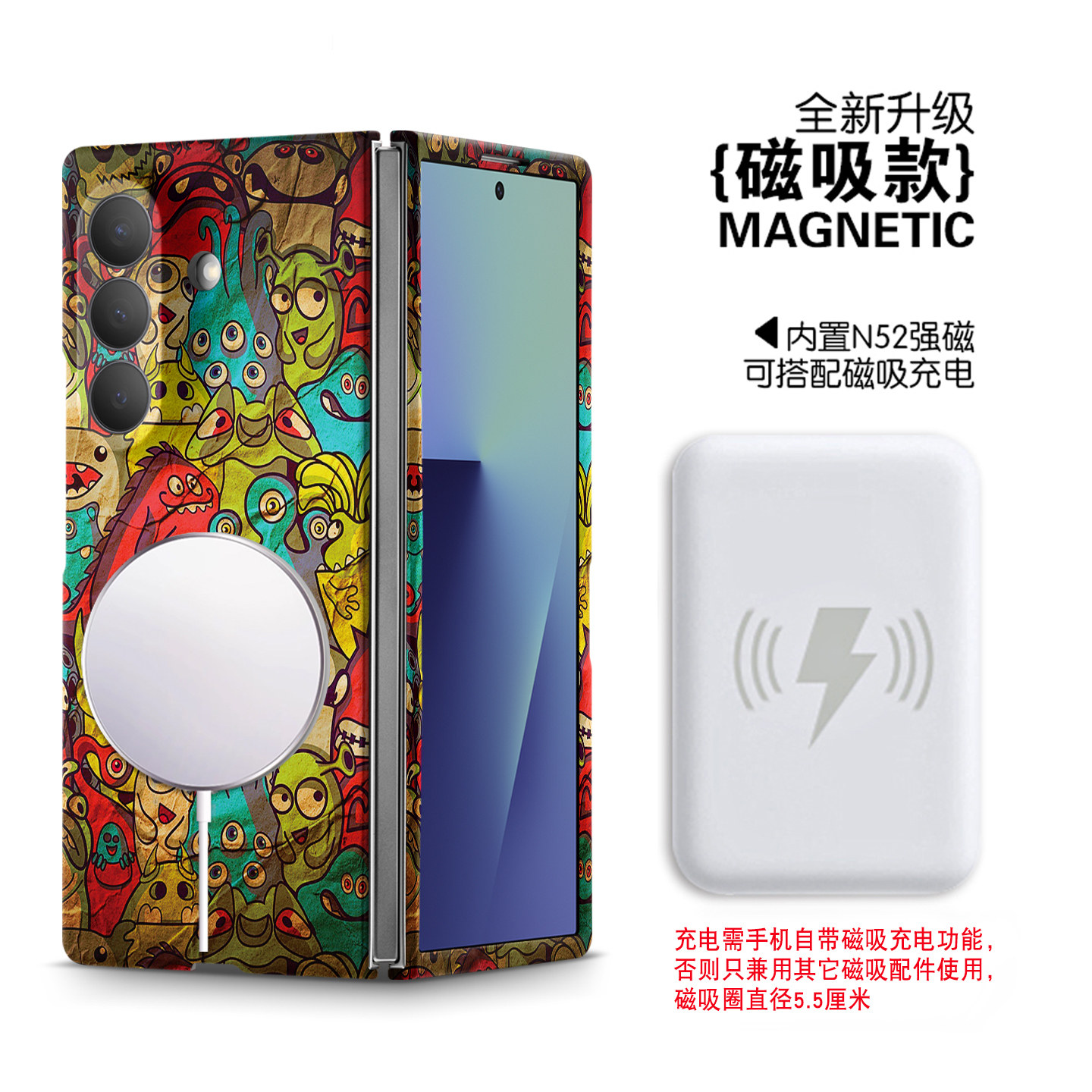 适用三星ZFold7手机壳新款磁吸W25超薄全包怪兽家族个性硬壳ZFold6夜光w24防摔防指纹外壳ZFold5折叠屏w23壳