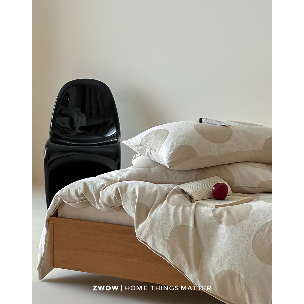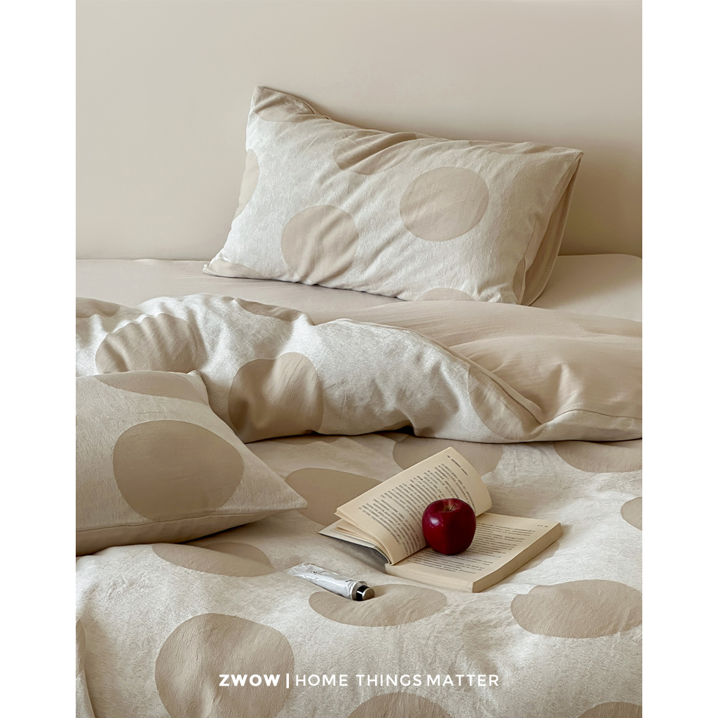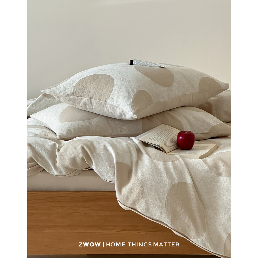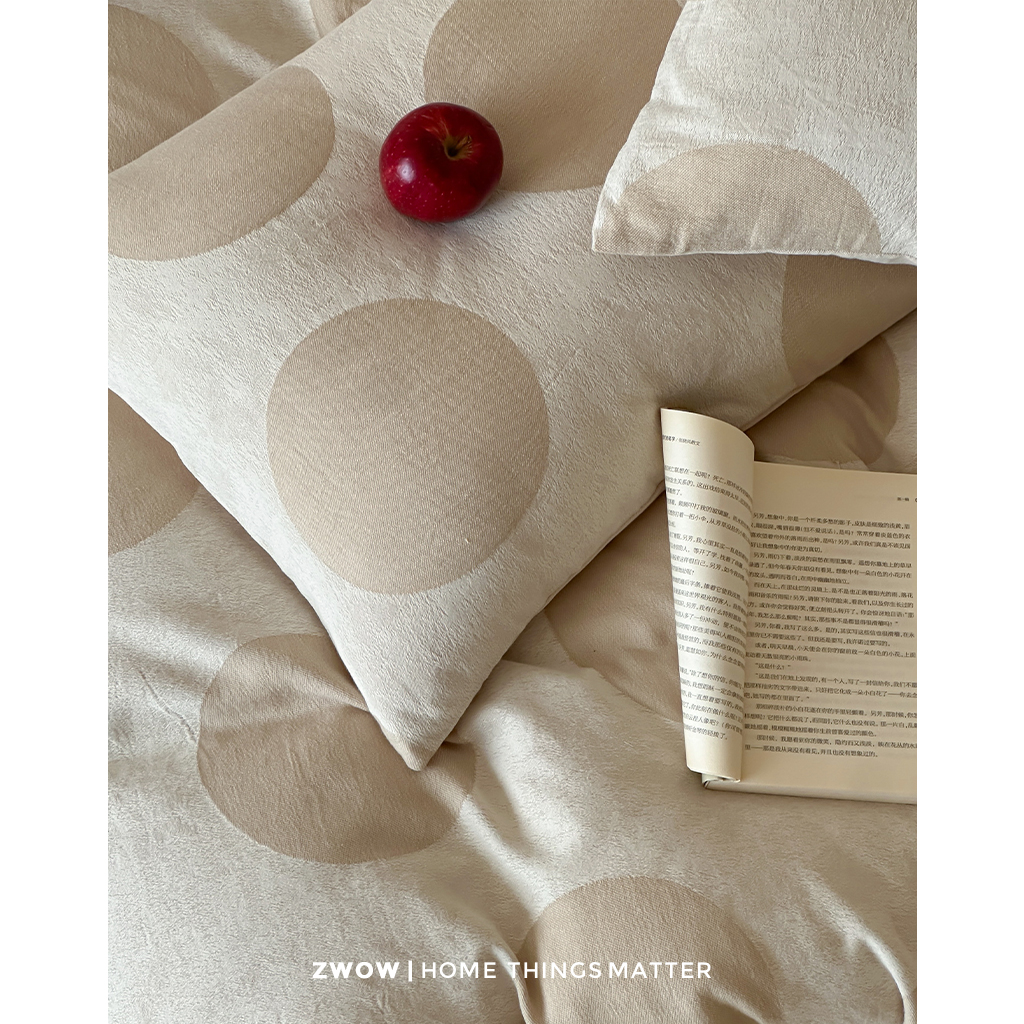 造卧zwow缎纹提花100全棉纯棉波点侘寂风复古米色床单被套四件套
