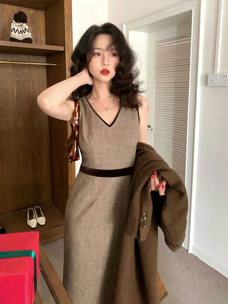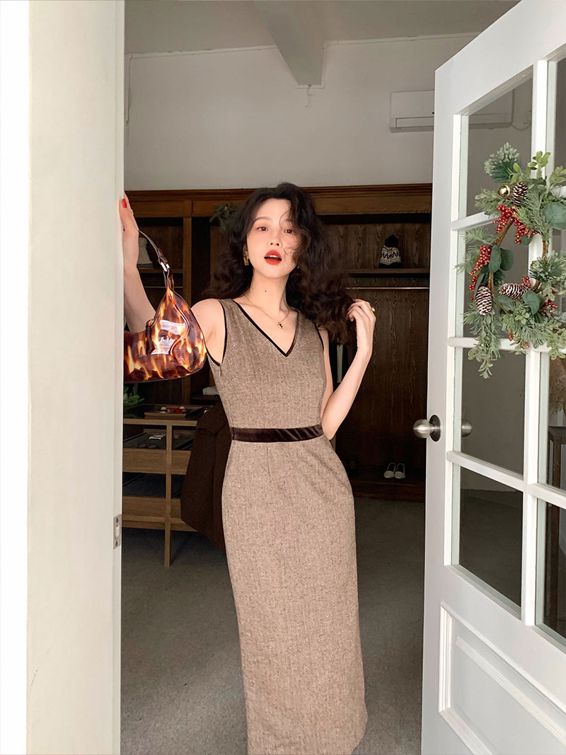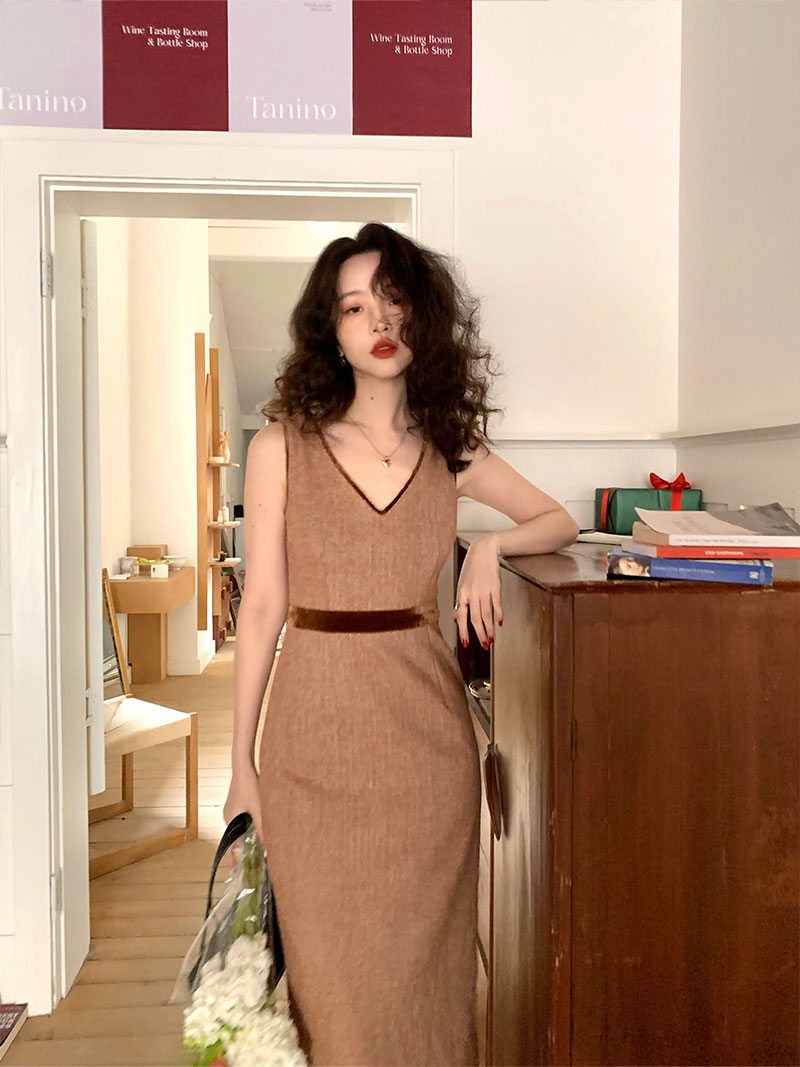 酒午自制【金风玉露 】港风复古修身显瘦内搭打底无袖V领连衣裙春
