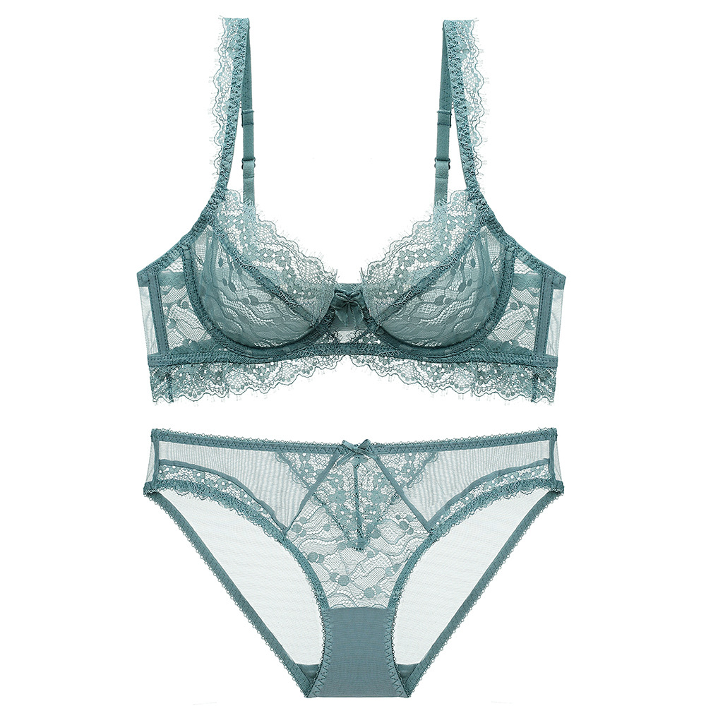 超薄款无海绵透明胸罩大胸显小蕾丝文胸女士性感内衣文胸套装