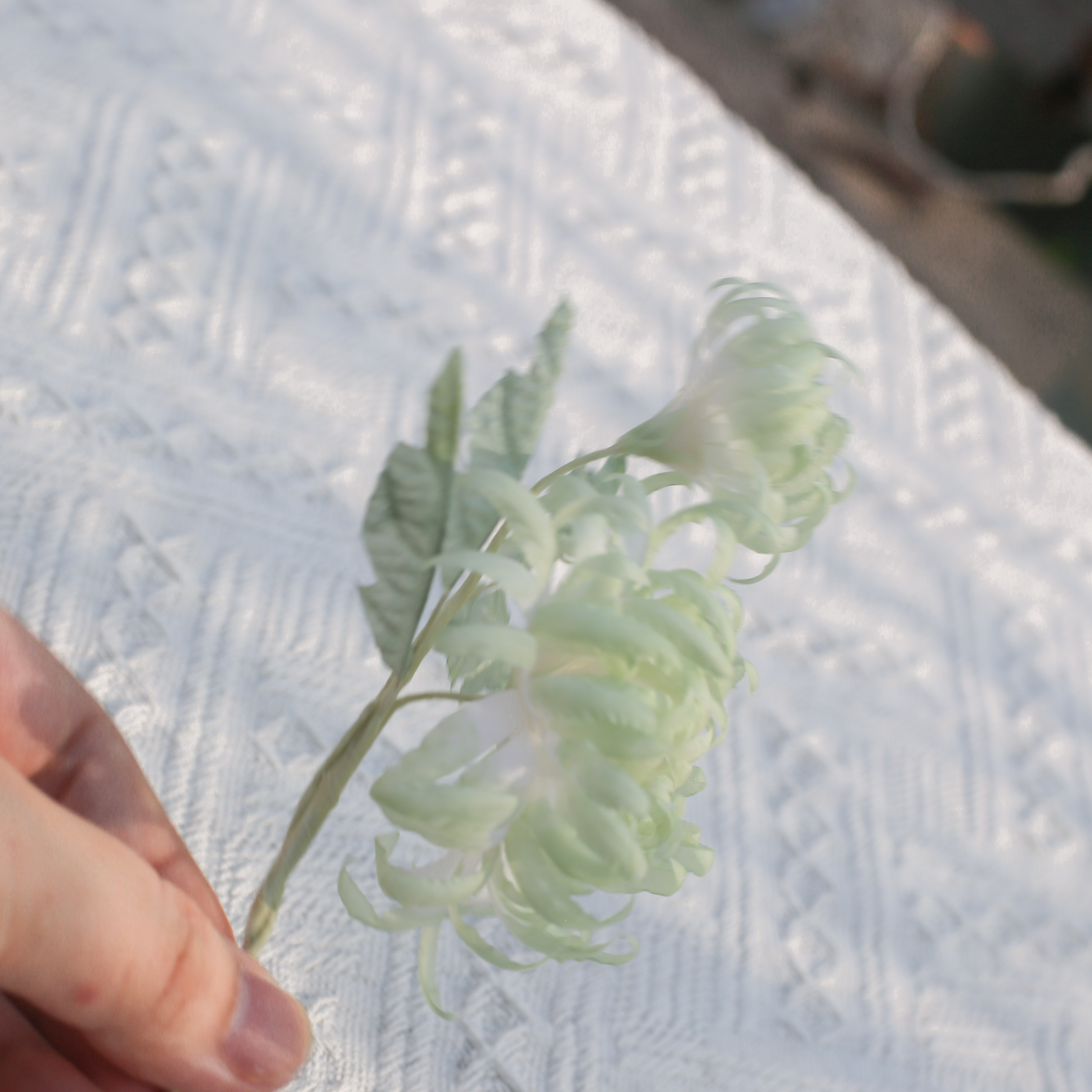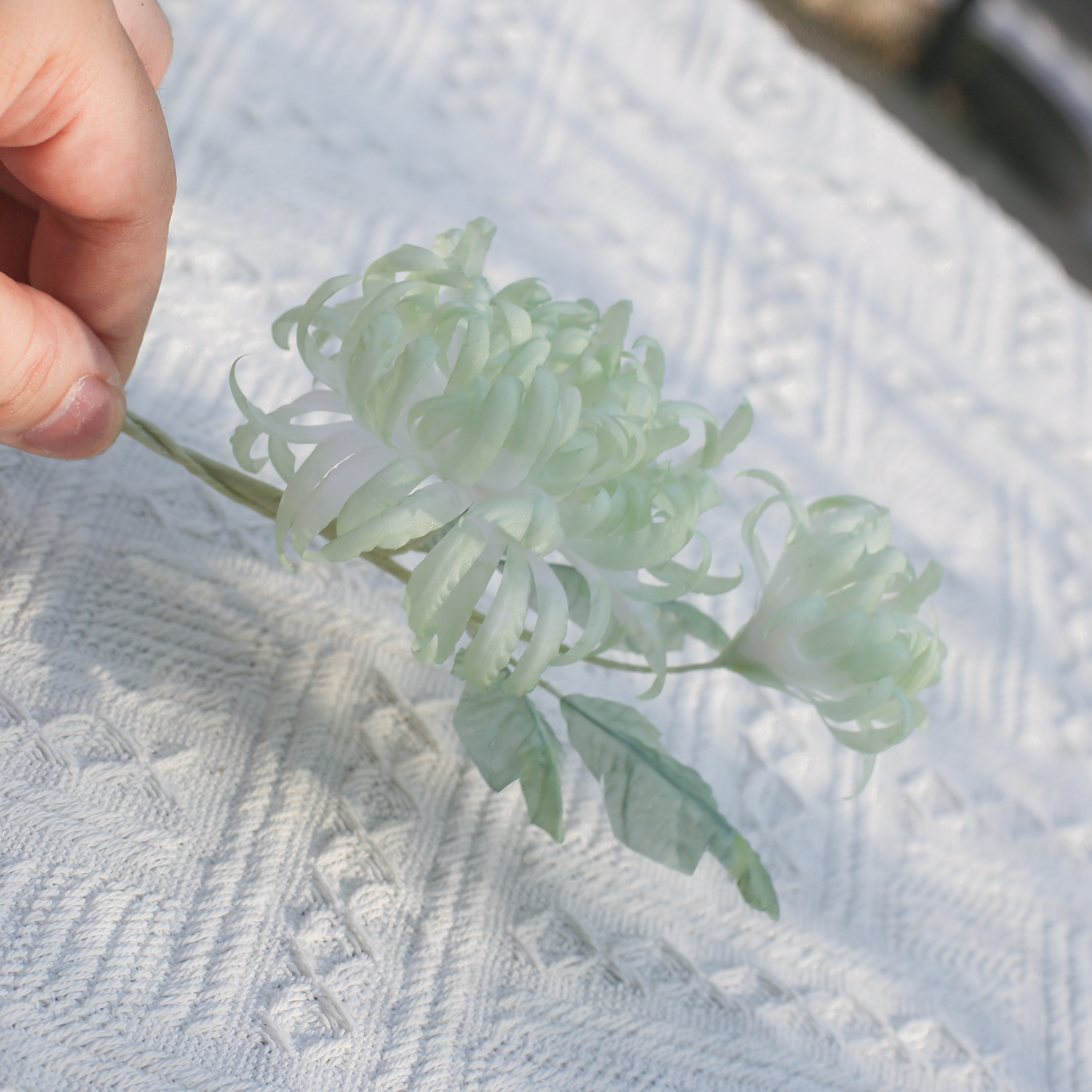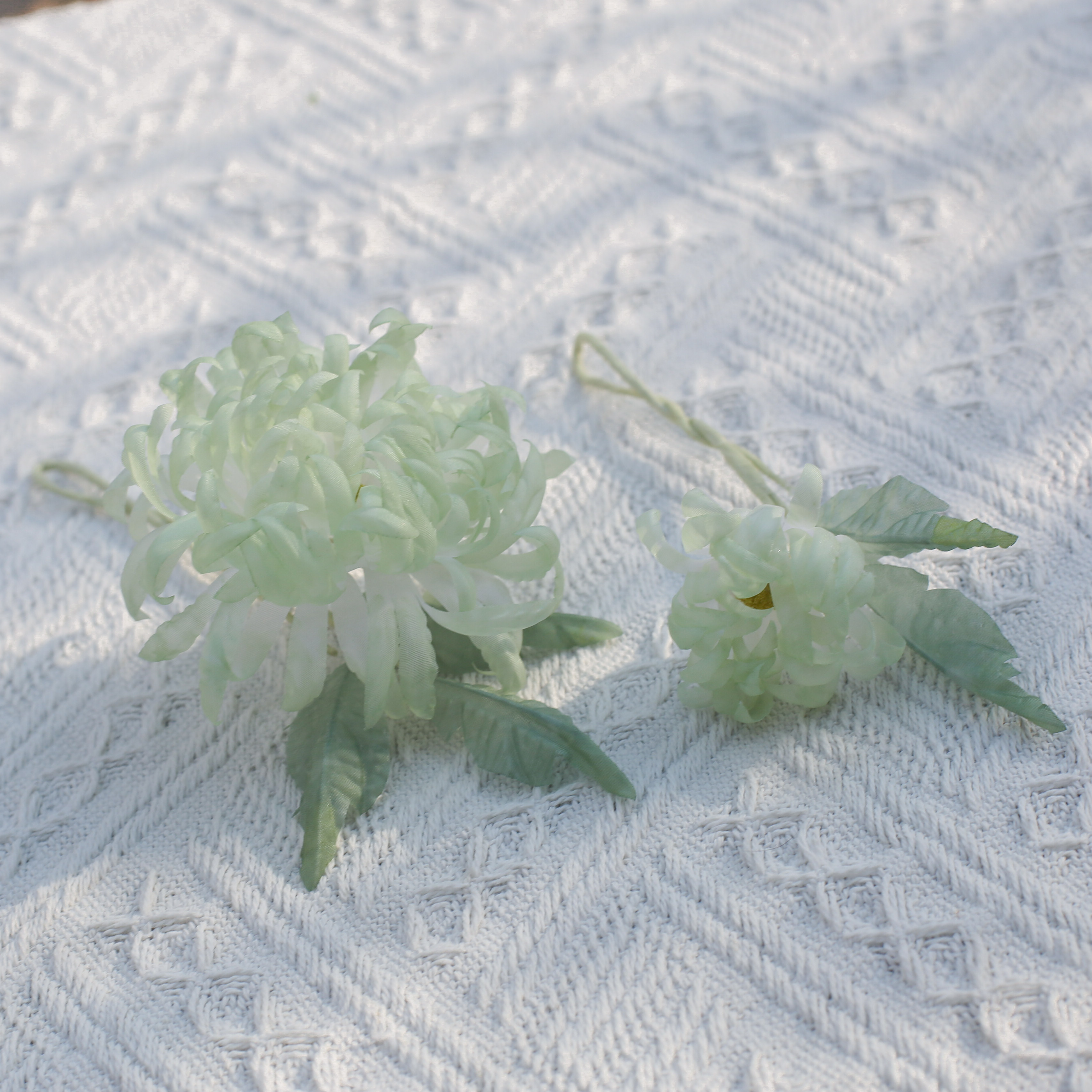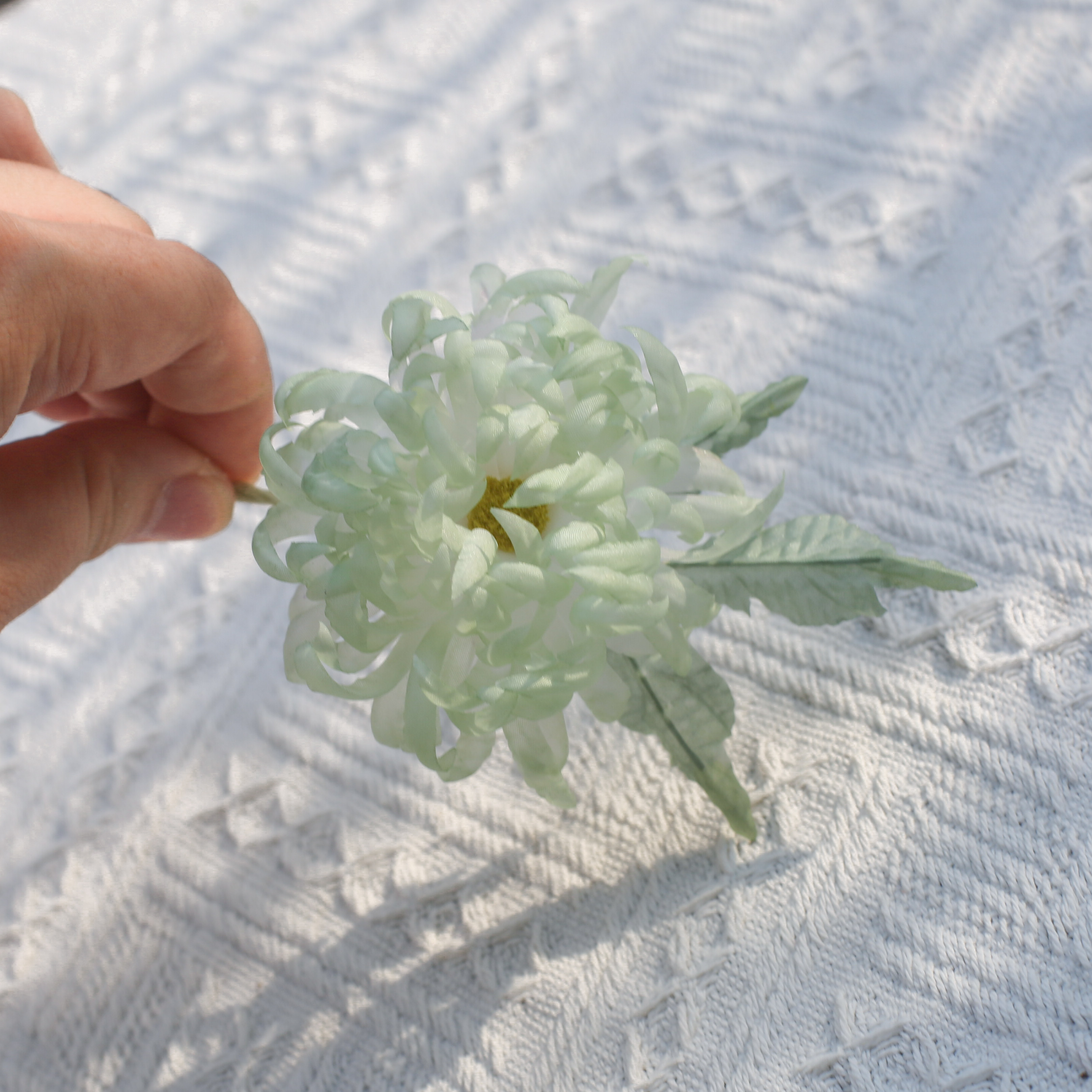 玉蕊|黑喵喵原创绿色菊花真丝烫花发饰造花古风汉服头饰配饰