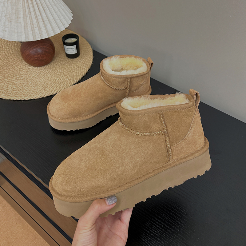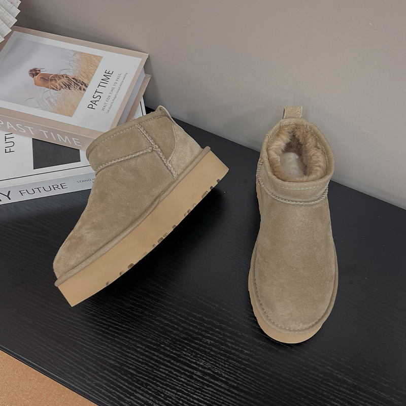 桑坡冬鞋雪地靴女2025秋冬新款皮毛一体加厚增高时尚短筒雪地鞋