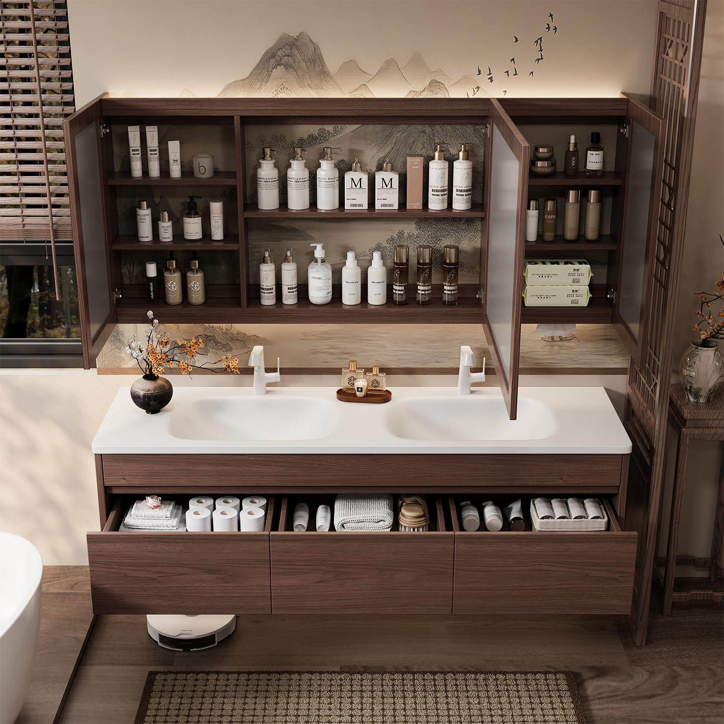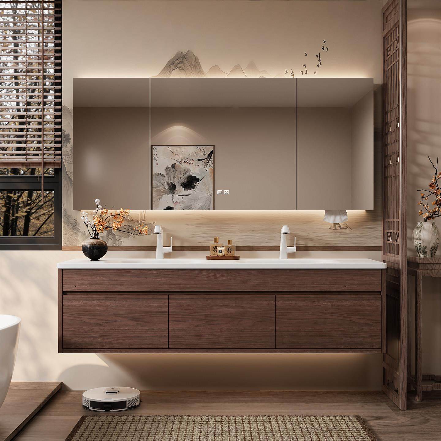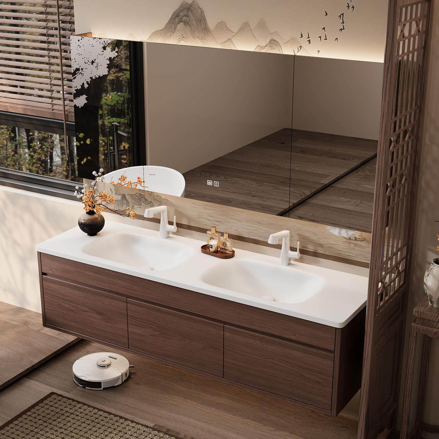 杜邦可丽耐一体盆浴室柜组合蜂窝铝中古风双盆洗漱台洗脸池洗手盆