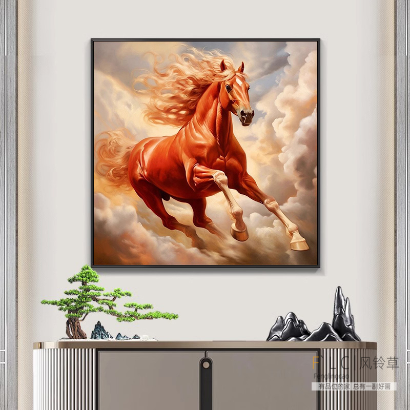 奔腾骏马钻石画带框满钻2025新款客厅餐厅粘钻石贴十字绣马到成功