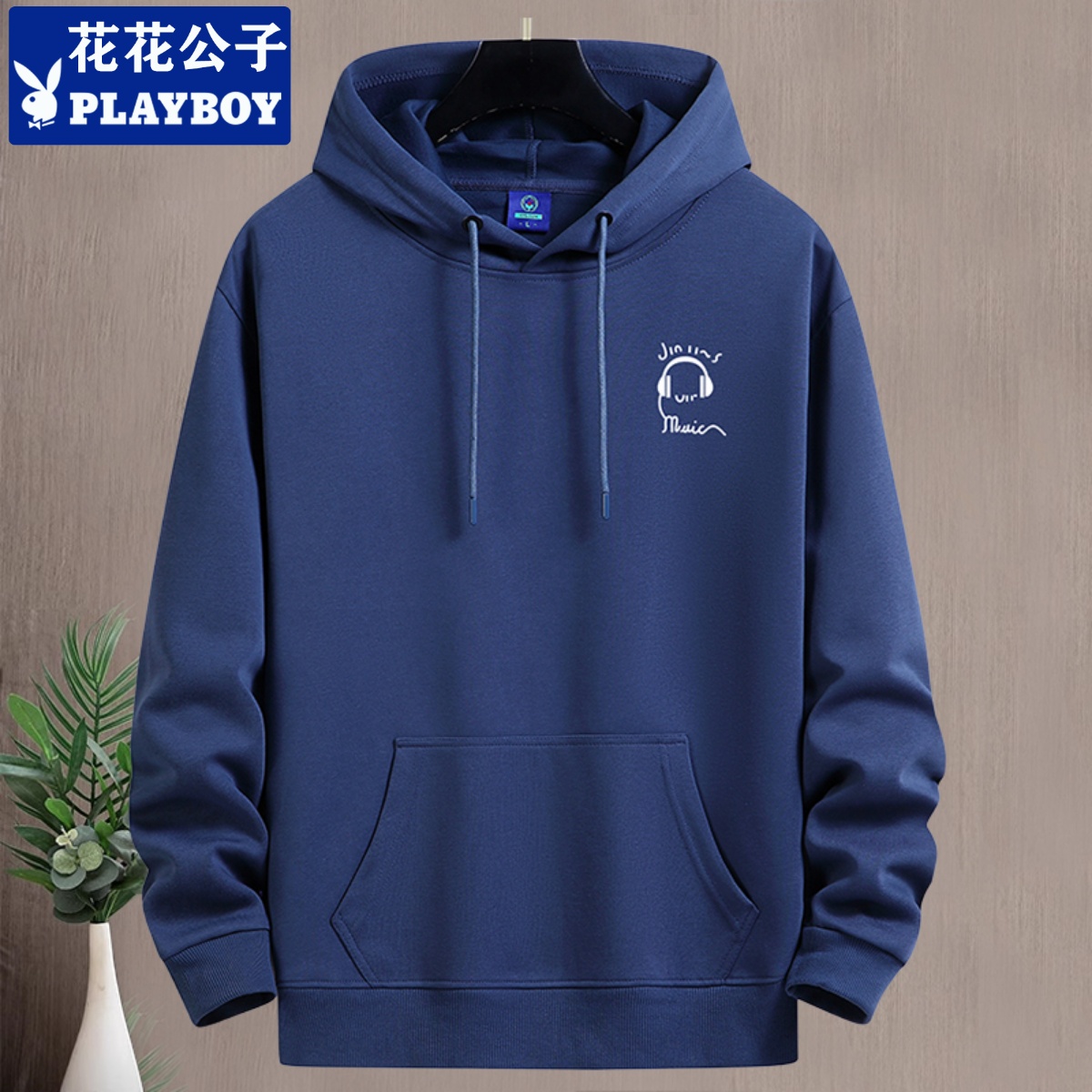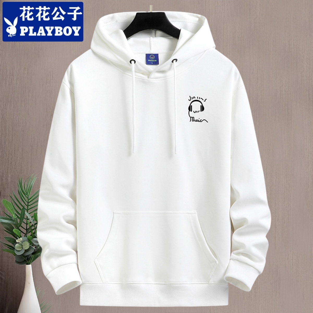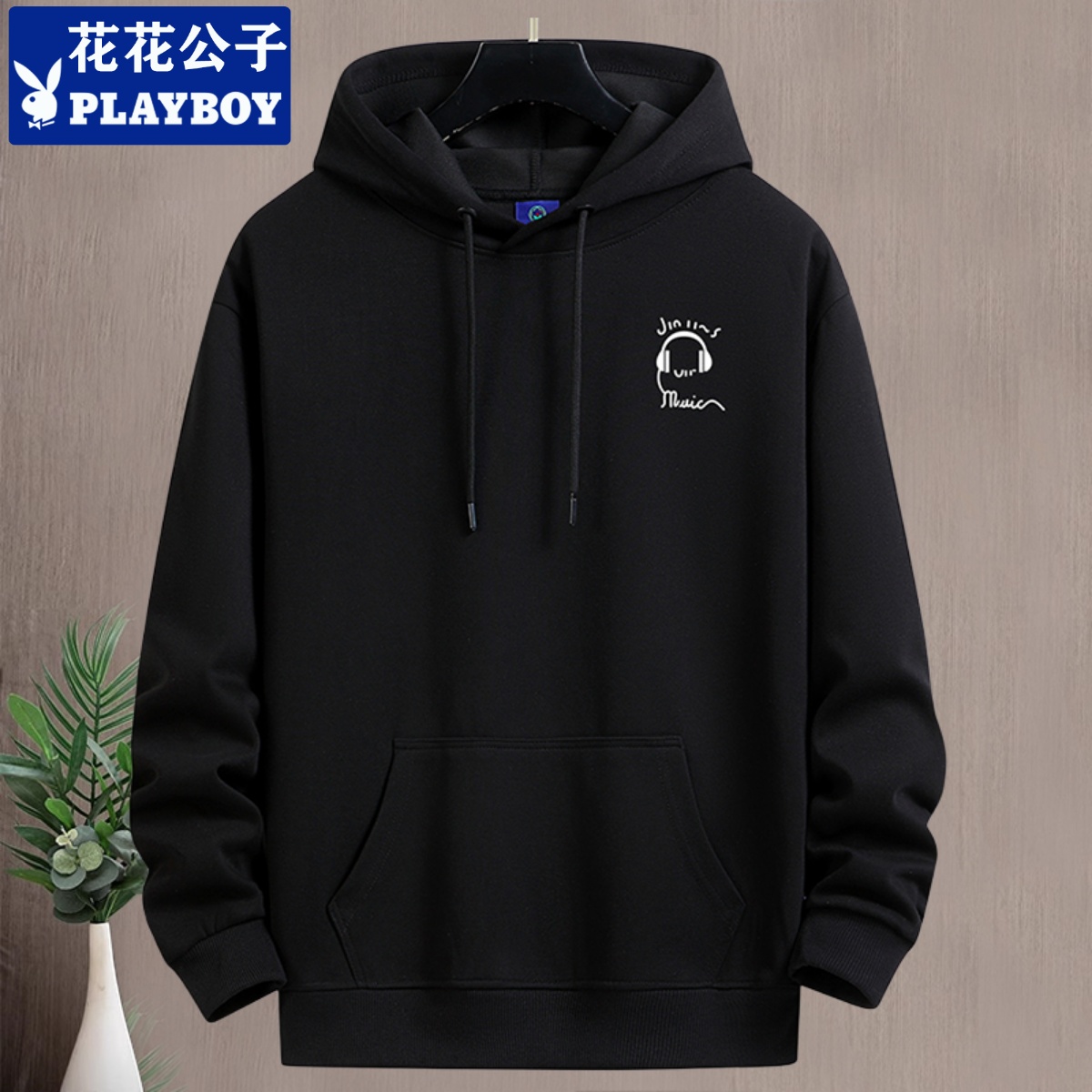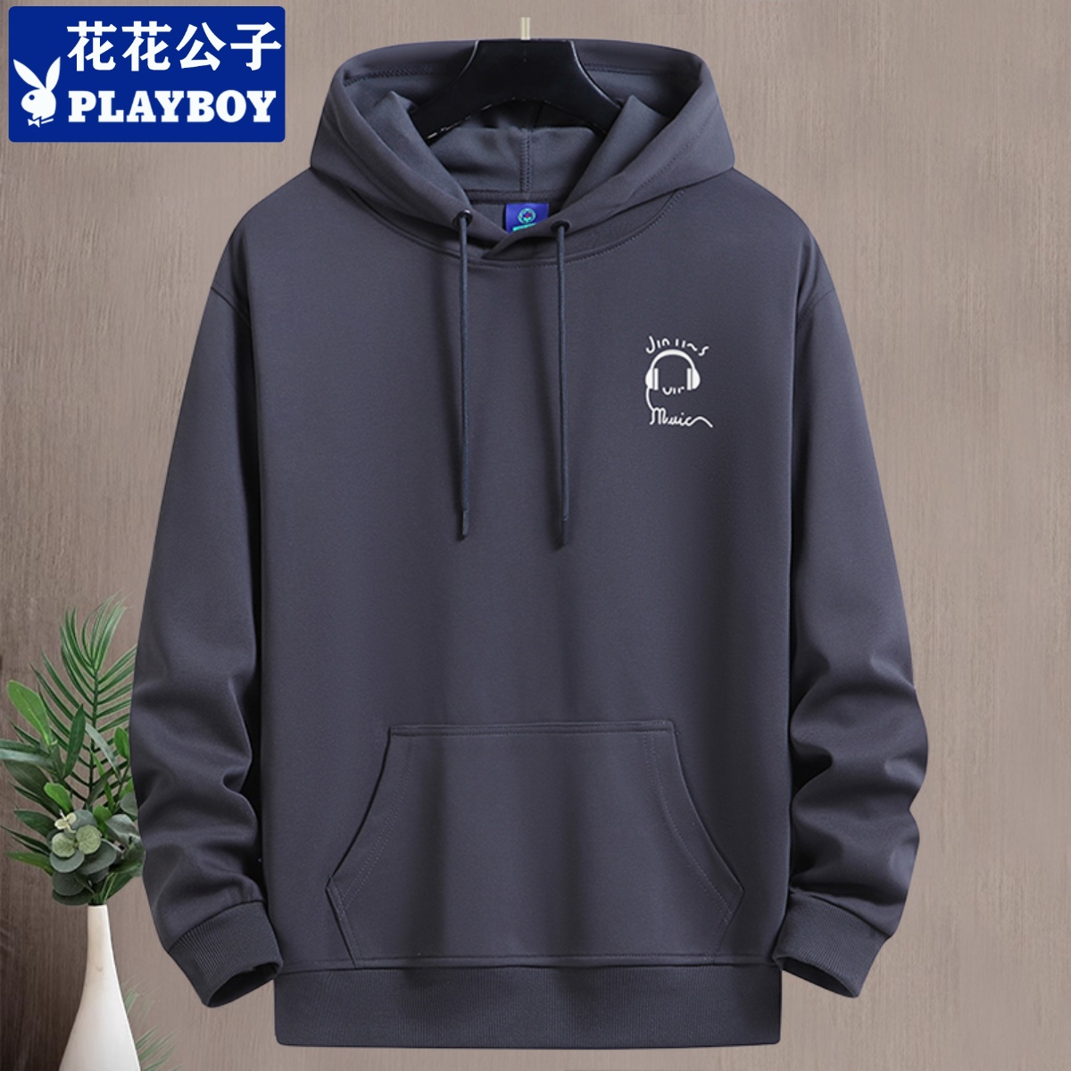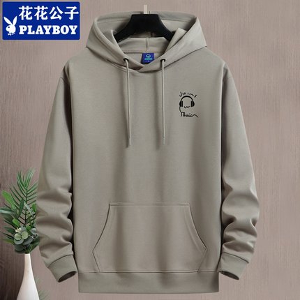 花花公子秋冬加绒卫衣男款连帽纯棉青年休闲宽松大码百搭帽衫外套