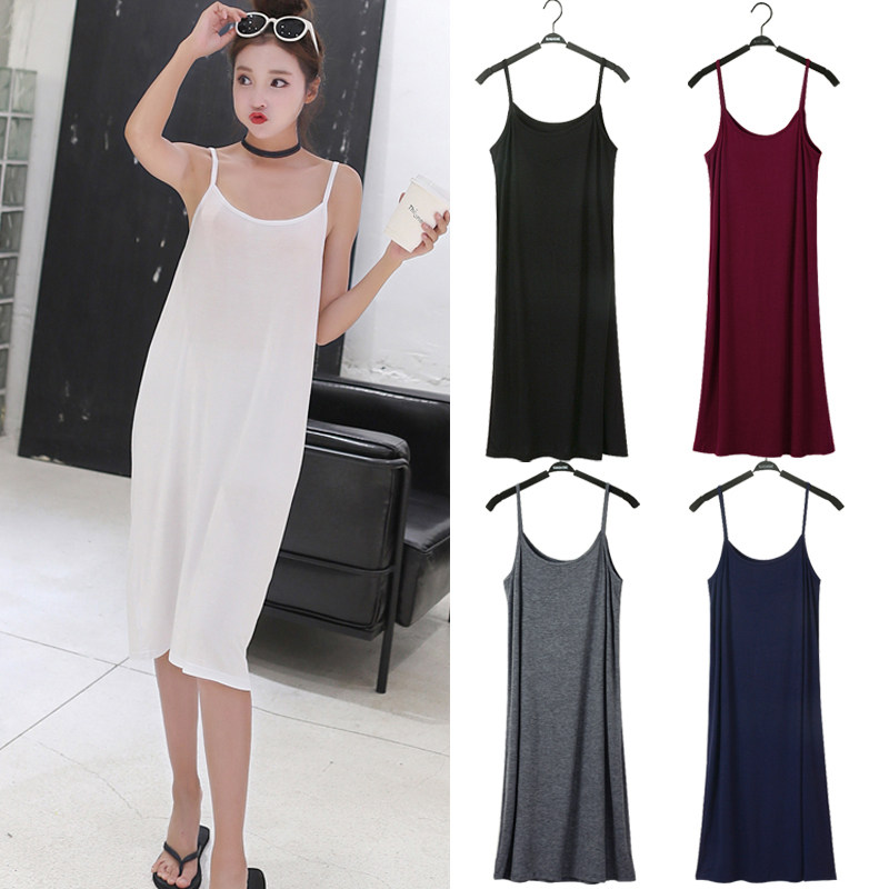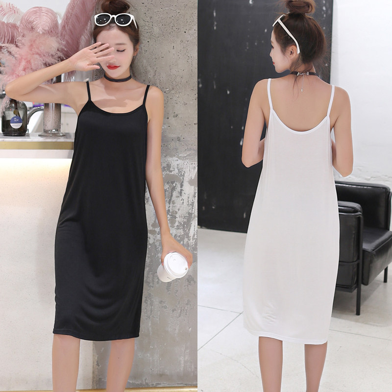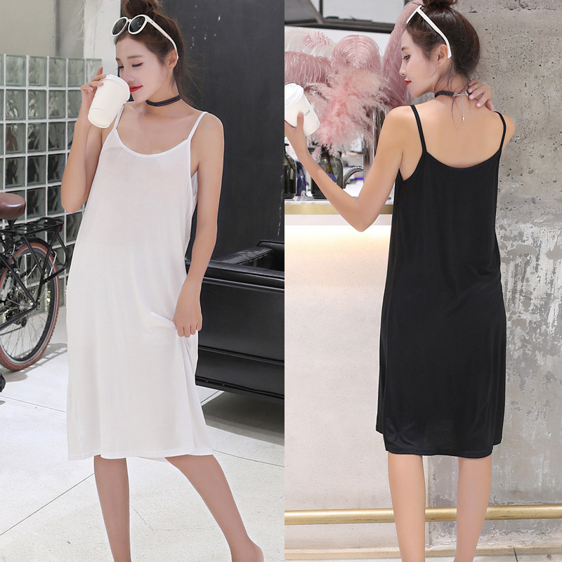 春夏韩版内搭细带吊带裙中长款连衣裙背心女宽松莫代尔打底衫大码