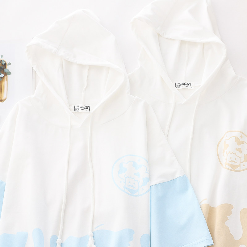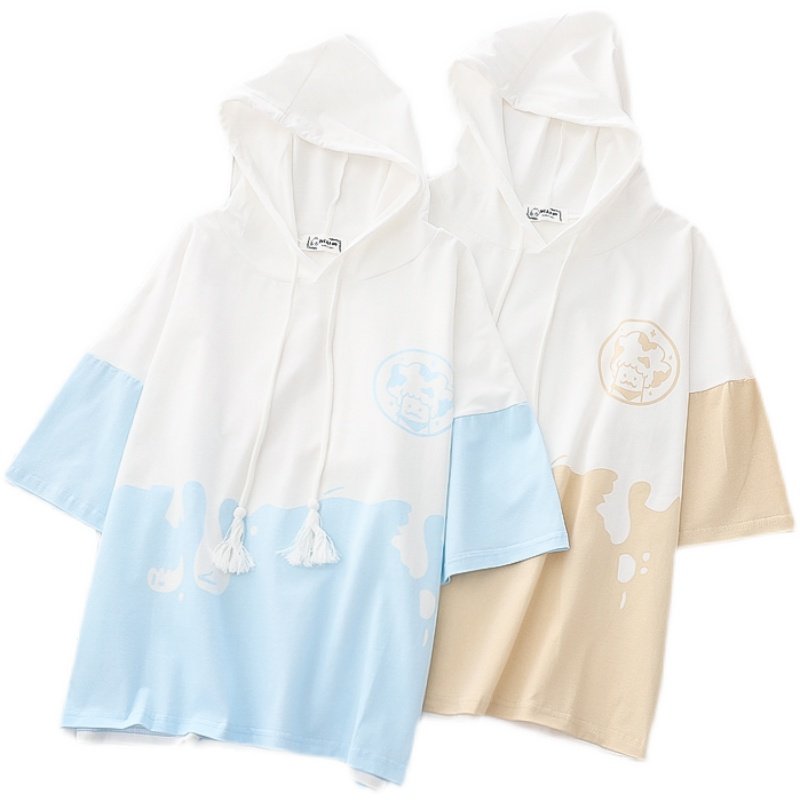 2025夏季装少女百搭短袖t恤初中高中学生学院风韩版宽松连帽上衣