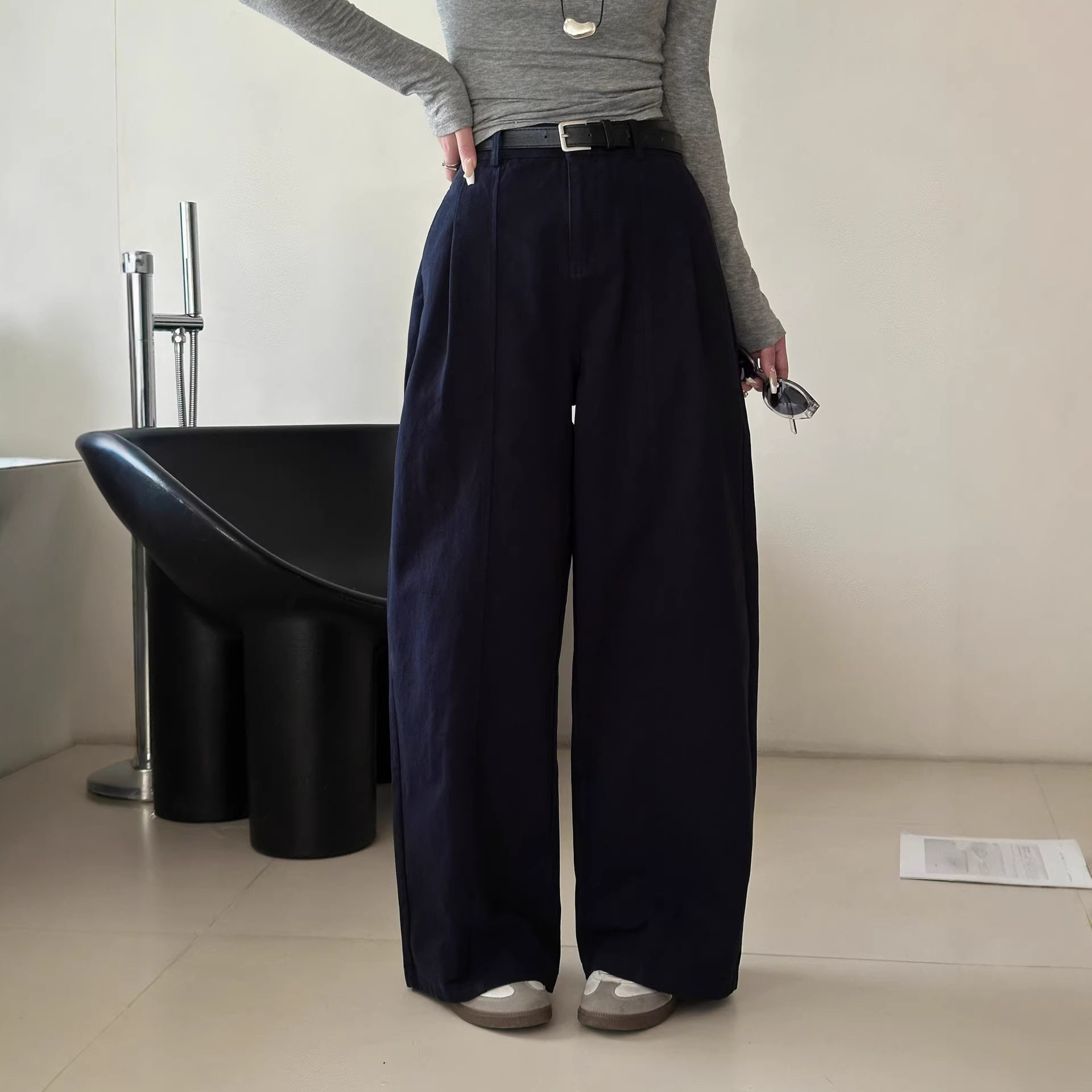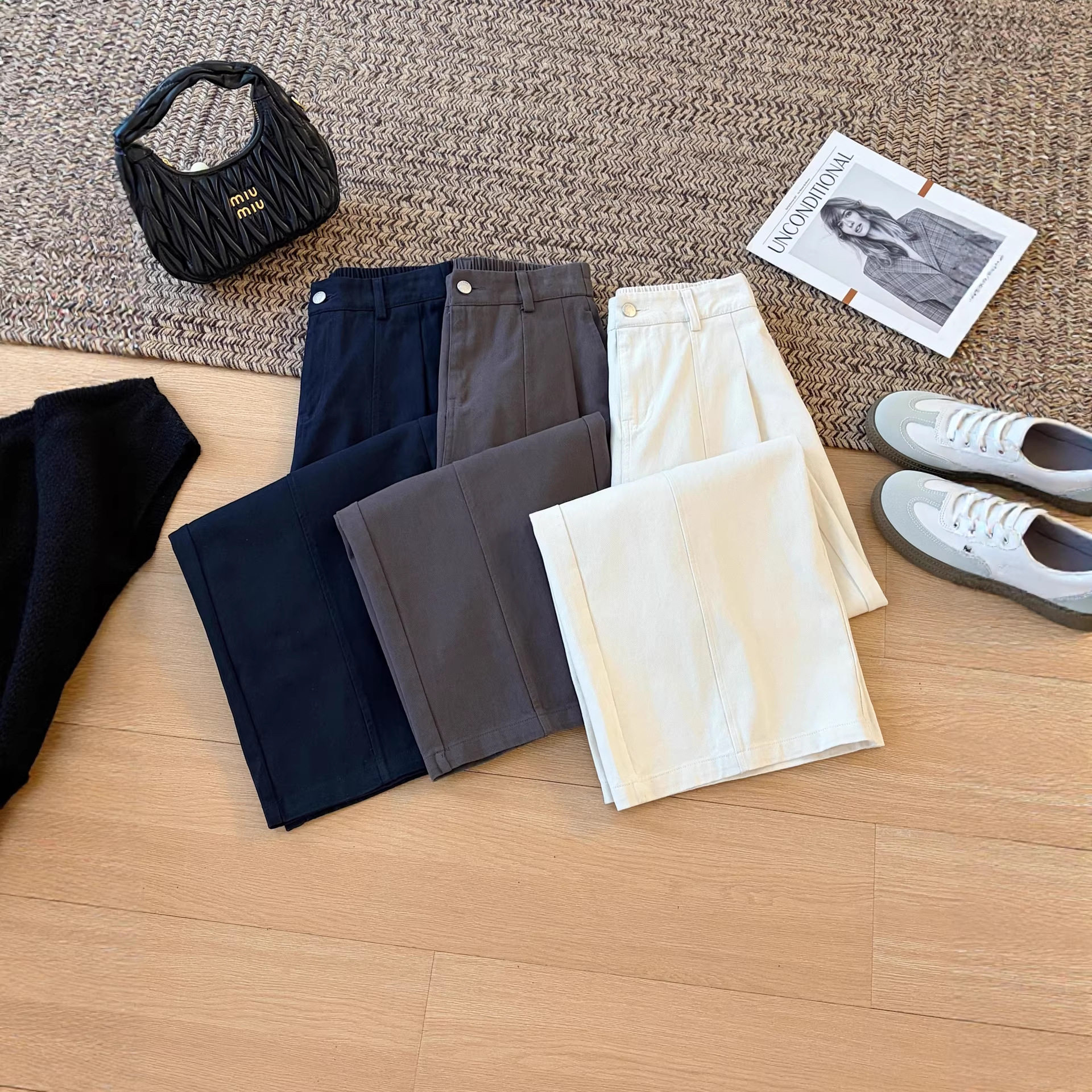 CHAO级推荐!韩系简约舒适米色棉质杨桃裤女2026早春新款直筒裤子